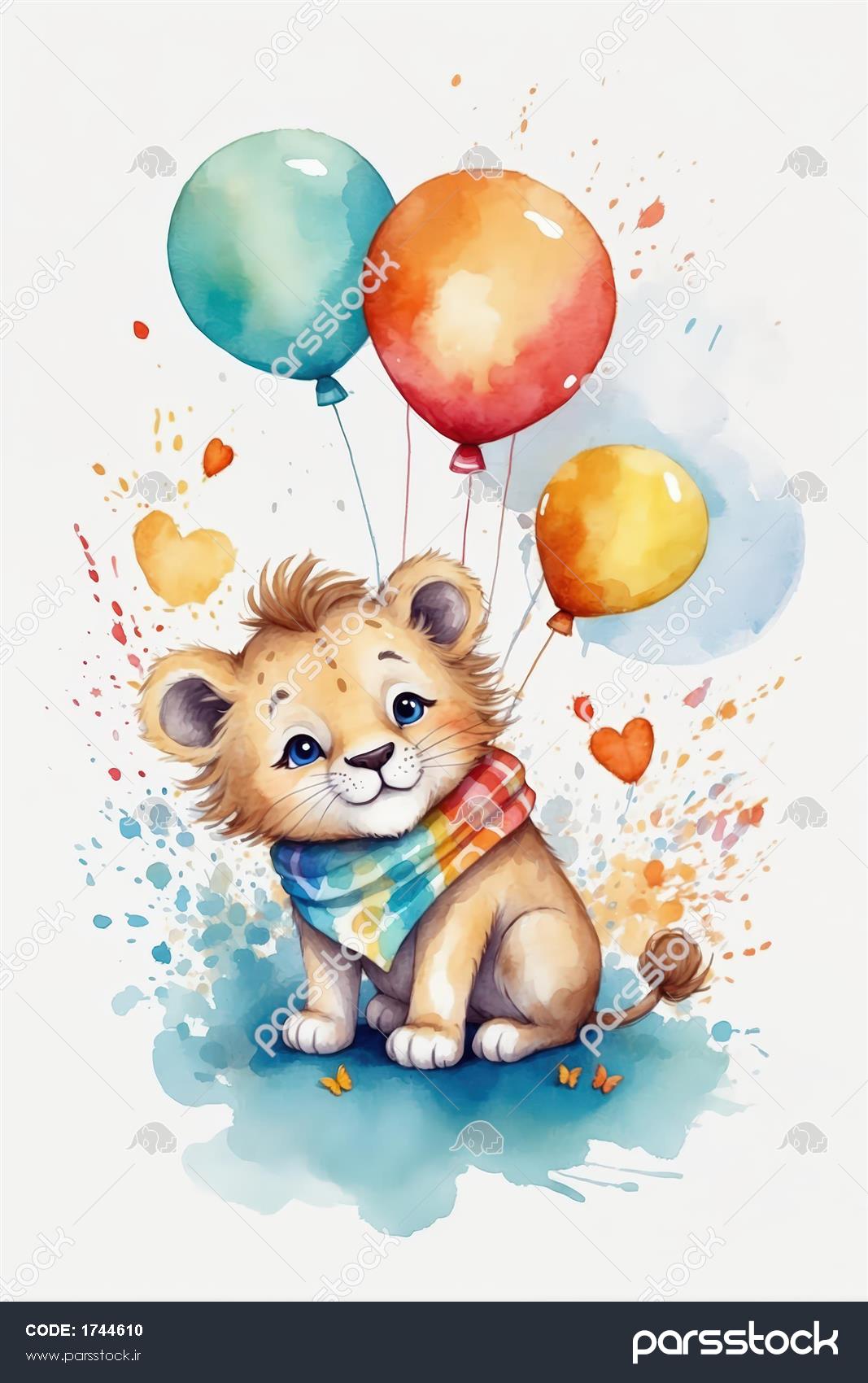 بچه شیر تاجدار با چهار بادکنک و پروانههای نارنجی، تصویر آبرنگ جشن تولد زیبا بچه شیر خاکستری تاجدار با شنل نارنجی و بادکنک، نقاشی آبرنگ برای پوستر بچه شیر کوچک خندان با بادکنکهای شناور و پروانههای رنگی، نقاشی آبرنگ شاد بچه شیر بامزه تاجدار با دستمال گردن صورتی و بادکنکهای روشن، سبک آبرنگ بچه شیر تاجدار با پاپیون و بادکنکهای جشن، تصویر هنری آبرنگ جذاب برای اتاق کودک تصویر کارتونی سهبعدی دختر بچه شاد با موهای نئونی و بادکنکهای متنوع، طرح پوستر اتاق کودک طرح جلد دفترچه کارتونی بچه شیر با زمینه صورتی طرح گرافیکی دختر بچه بالنی با بالهای رنگینکمان و لباس جشن تولد برای تابلو پرتره خرگوش سفید با شال گردن صورتی و بادکنک، طرح آبرنگی و پروانه بچه ببر کارتونی نشسته در طبیعت با برگهای سرسبز، طرح جذاب برای چاپ روی کوسن و دکوراسیون نمایش همه