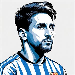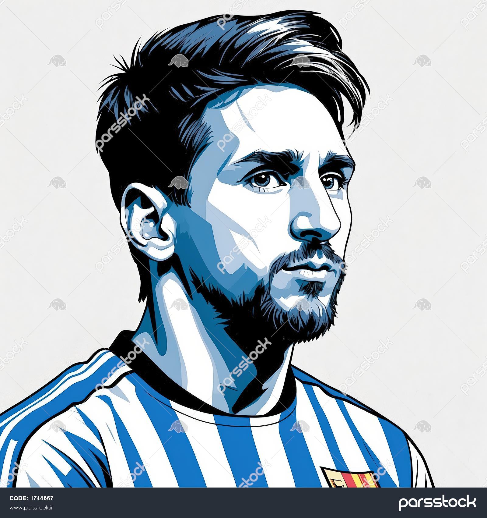 تصویر هنری مسی با لباس آرژانتین و رنگ آبی سرد؛ مناسب چاپ باکیفیت