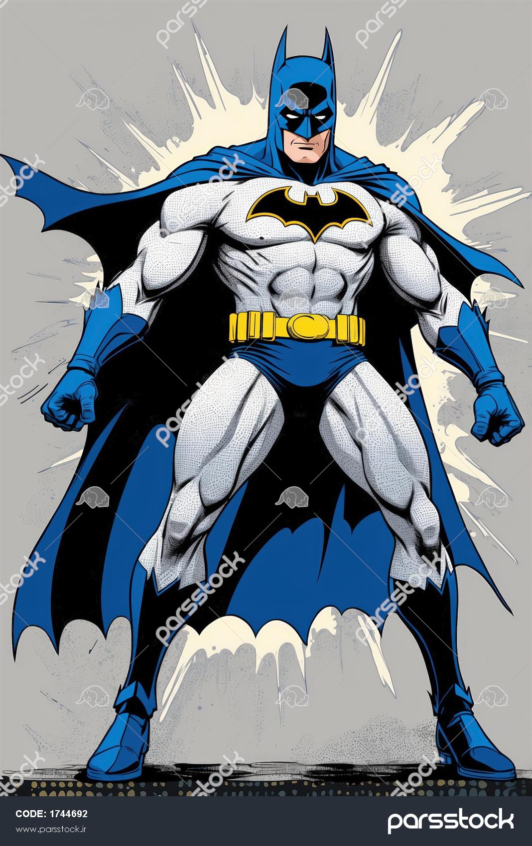 چاپ دکوراتیو بتمن تمام قد کمیک بوکی آبی و سفید برای اتاق گیمینگ و نوجوان