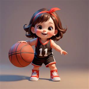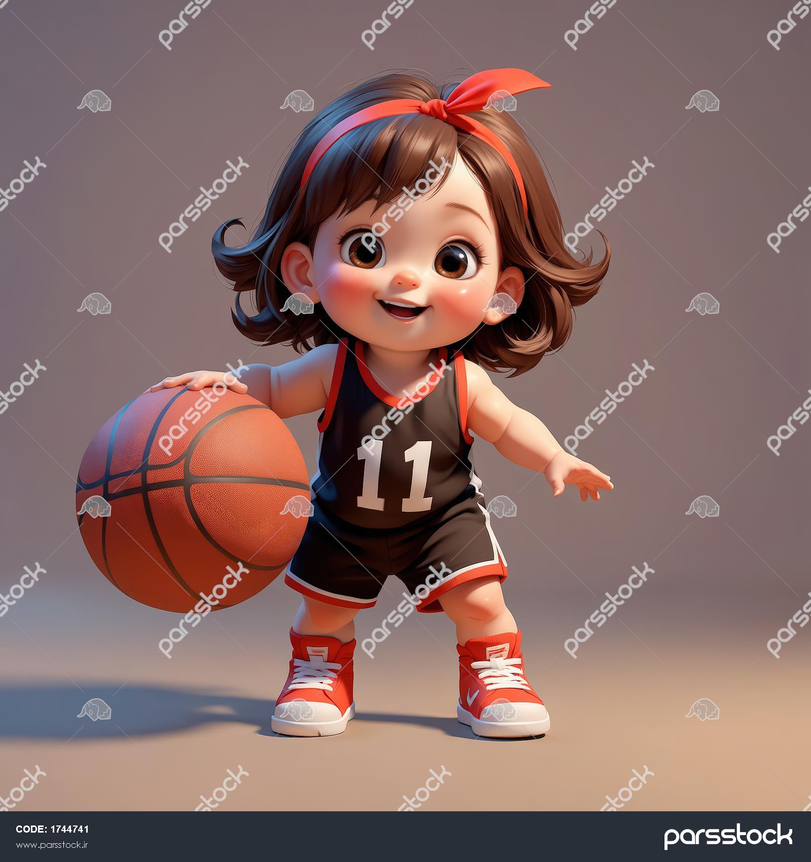 طرح باکیفیت دختر کارتونی بسکتبالیست با لباس مشکی و کفش قرمز