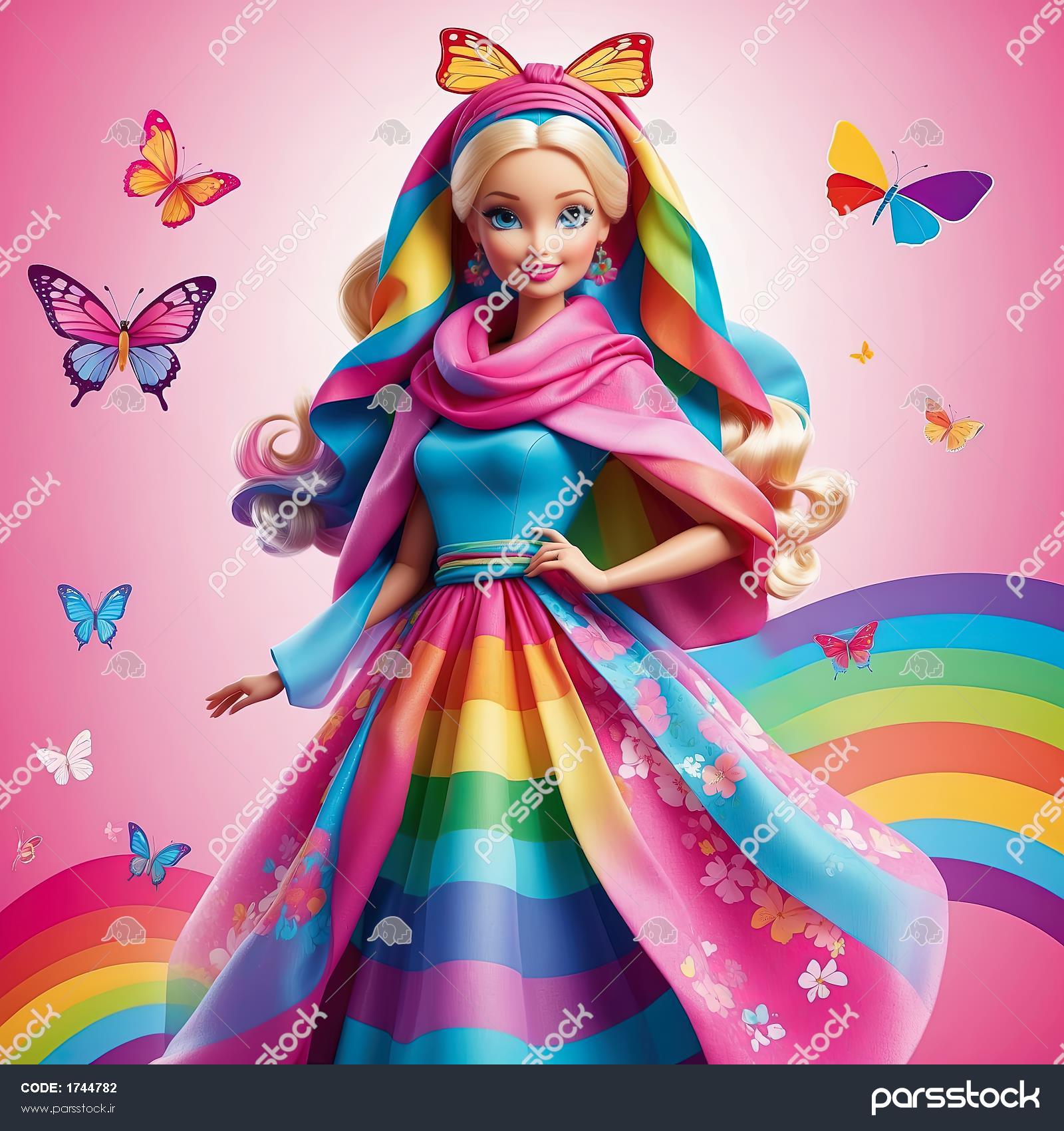 باربی با لباس مجلسی شیک با تزئین پروانه روی سینه طرح باربی پری پروانه با بالهای رنگینکمانی و لباس مجلسی باربی با شنل کلاهدار و لباس دامن پفکی رنگینکمانی باربی با لباس دامن بلند چاکدار رنگینکمانی و پروانههای آبی باربی با شنل پرنسسی رنگارنگ و لباس بلند پر زرق و برق باربی با هدبند گلدار و لباس مجلسی طرحدار و شال کوتاه باربی با روسری طرحدار و لباس بلند رنگینکمانی در پسزمینه صورتی باربی با تاج شاهزاده و لباس بلند رنگارنگ و شال گردن باربی با شال رنگینکمان و لباس شب بلند برای چاپ دکوراتیو باربی با شال گردن رنگینکمانی و لباس مجلسی شیک مشاهده همه