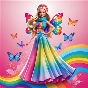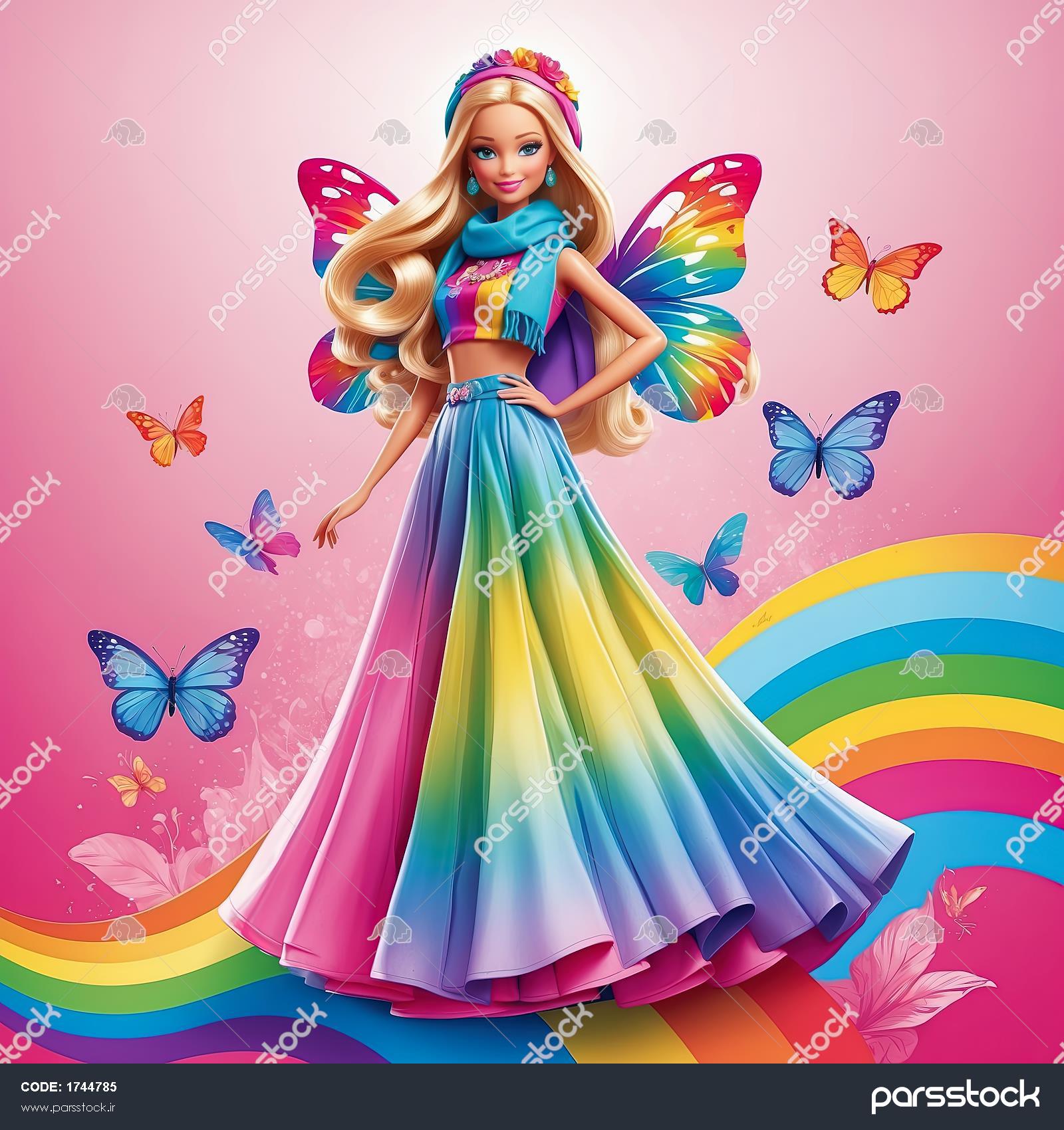 طرح باربی پری پروانه با بال‌های رنگین‌کمانی و لباس مجلسی