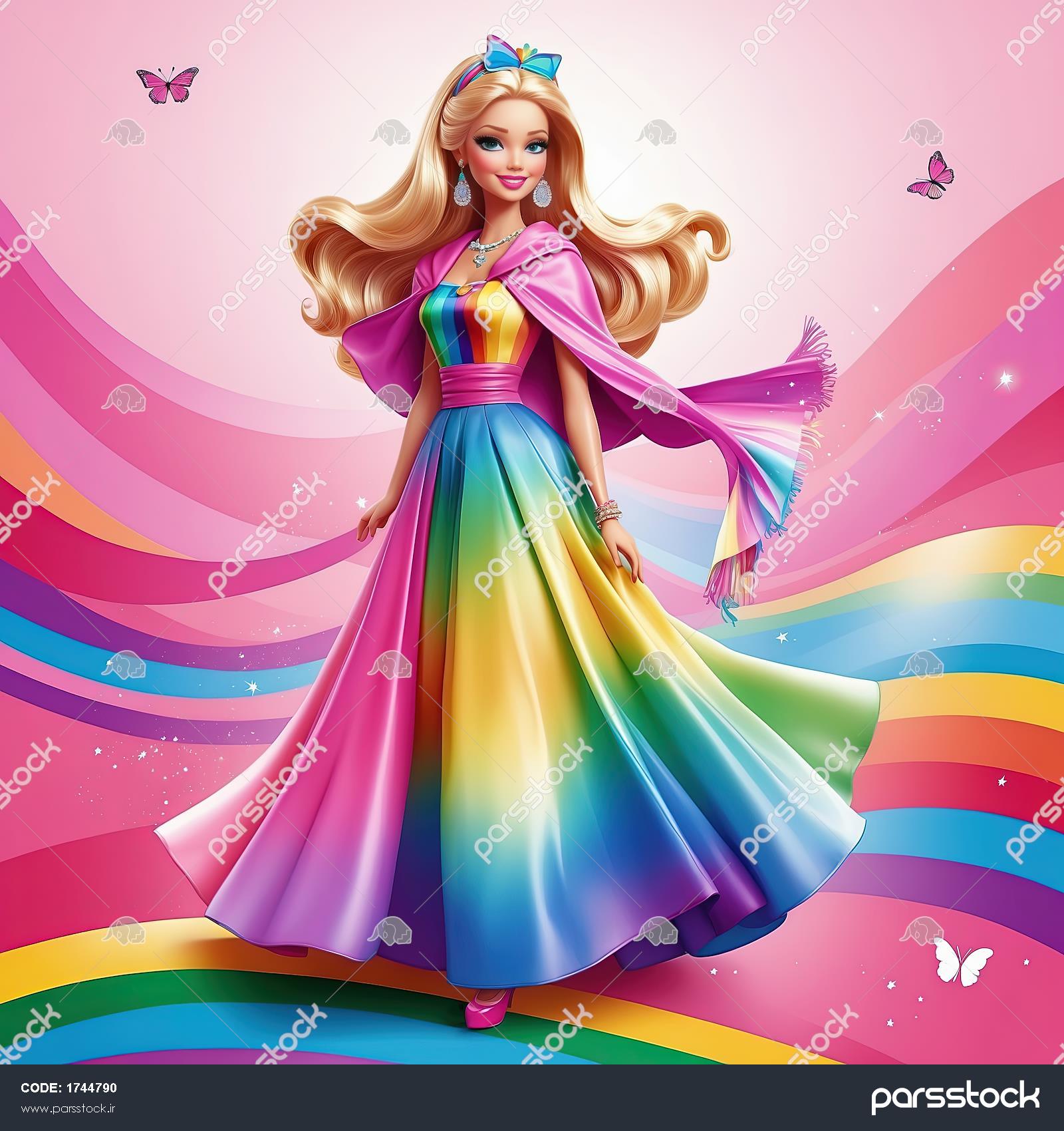 باربی با تاج شاهزاده و لباس بلند رنگارنگ و شال گردن باربی با لباس دامن بلند چاکدار رنگینکمانی و پروانههای آبی باربی با موهای بلند و لباس پرنسسی دامن حجیم رنگینکمانی باربی با تاج گل و لباس بلند دامن پفدار رنگینکمان باربی با روسری طرحدار و لباس بلند رنگینکمانی در پسزمینه صورتی باربی با شال رنگینکمان و لباس شب بلند برای چاپ دکوراتیو باربی شاهزاده با لباس مجلسی بلند رنگینکمان و پروانهها باربی با لباس بلند رنگینکمانی و موهای طلایی برای تابلو پوستر باربی با موهای بلند و لباس پرنسسی دامن حجیم رنگینکمان باربی با شنل کلاهدار و لباس دامن پفکی رنگینکمانی مشاهده همه