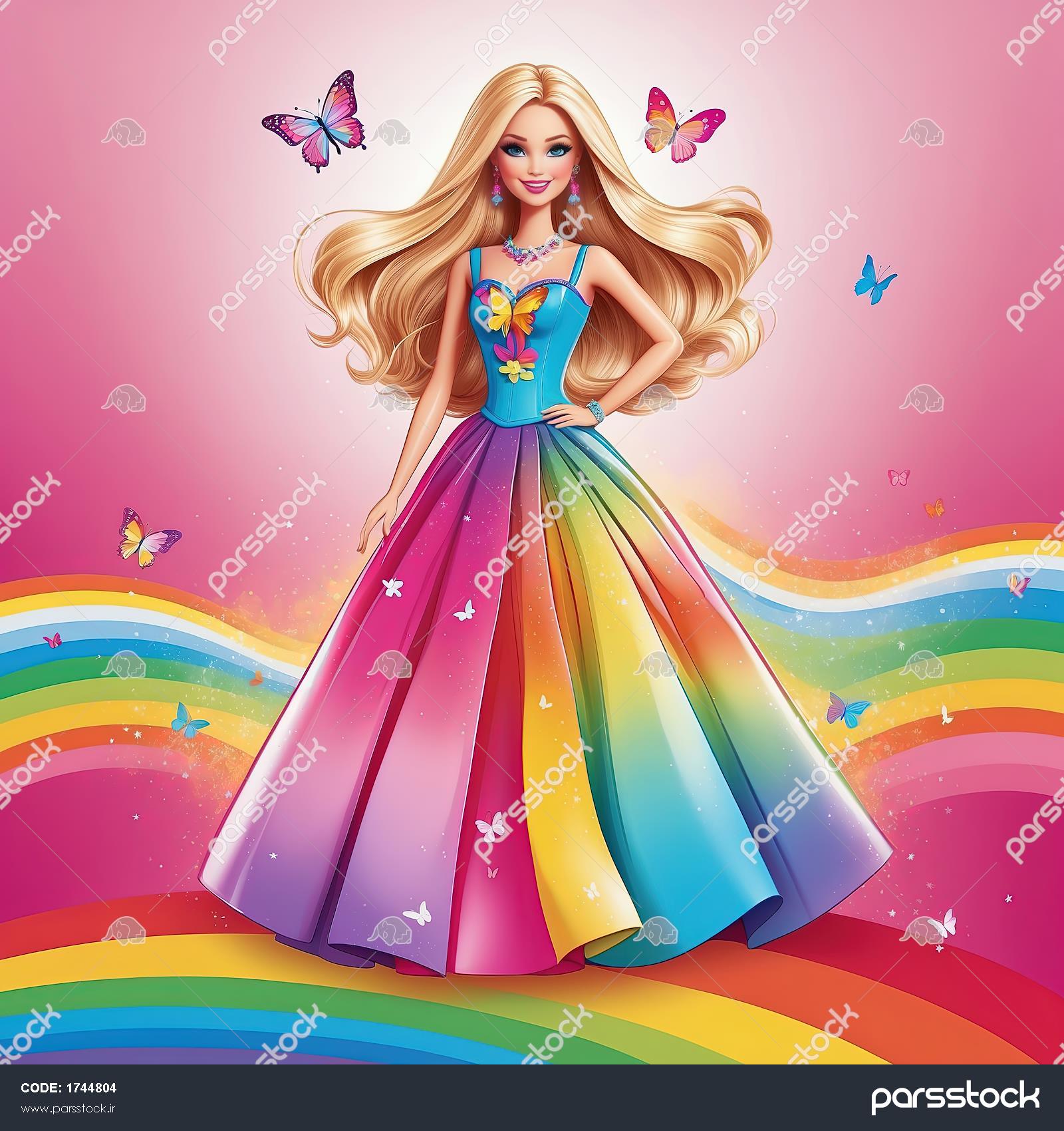 باربی با شال رنگینکمان و لباس شب بلند برای چاپ دکوراتیو باربی با موهای بلند و لباس پرنسسی دامن حجیم رنگینکمانی باربی با لباس دامن بلند چاکدار رنگینکمانی و پروانههای آبی باربی با لباس بلند رنگینکمانی و موهای طلایی برای تابلو شاهزاده باربی با لباس پرنسسی دامن پفکی رنگین کمان و تاج باربی با تاج گل و لباس بلند دامن پفدار رنگینکمان پوستر باربی با موهای بلند و لباس پرنسسی دامن حجیم رنگینکمان باربی شاهزاده با لباس مجلسی بلند رنگینکمان و پروانهها عکس مدلینگ زن با موهای بلند در لباس آبی و طلایی شیک و دراماتیک با پسزمینه آبی تیره برای تابلو و تزئین تصویر سه بعدی کودک پرجنب و جوش با لباس صورتی تزئین شده با رز، دستهای باز نمایش همه