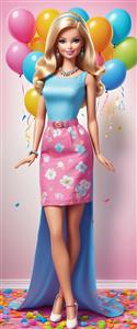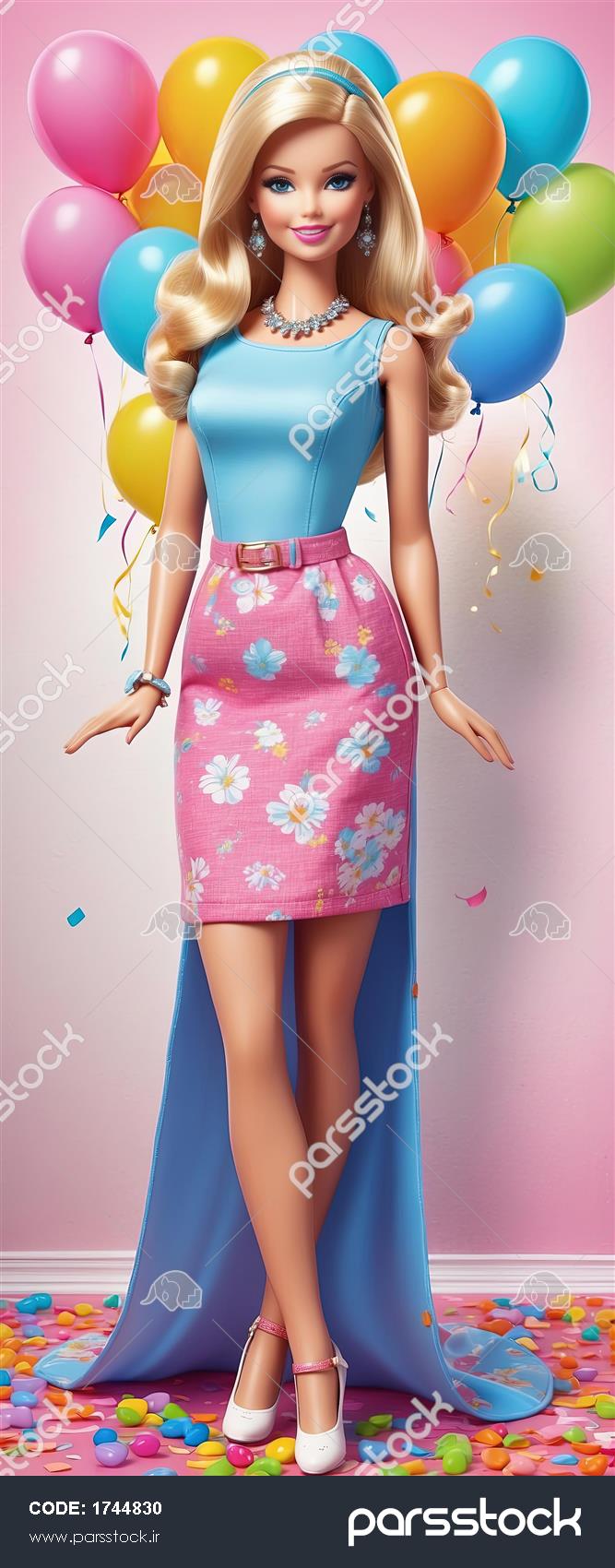 تصویر باربی با لباس پر زرق و برق در محیط فانتزی و نورپردازی حرفه‌ای