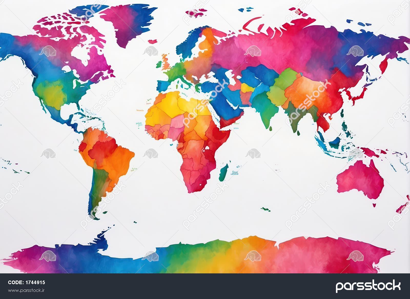 نقشه جهان انفجار رنگ بر زمینه سفید، طرح اسپری آبرنگی انتزاعی نقشه جهان رنگارنگ نئونی روی پسزمینه مشکی، طرح انتزاعی آبرنگی نقشه جهان با بافت آبرنگی رنگینکمانی بر پسزمینه تیره، طرح هنری نقشه جهان آبرنگ رنگینکمانی روی کاغذ سفید، طرح هنری و شاد نقشه جهان با ترکیب رنگهای آبرنگی ملایم بر زمینه تیره، طرح فانتزی نقشه جهان آبرنگی با لکههای رنگی، طرح هنری انتزاعی و زنده نقشه جهان با رنگهای متنوع و بافت آبرنگی بر زمینه مشکی، طرح شاد نقشه جهان آبرنگی با سایهروشنهای آبی و سبز، طرح هنری ملایم نقشه جهان با رنگهای جداگانه کشورها در سبک آبرنگ، طرح هندسی نقشه جهان آبرنگی با اقیانوسهای آبی روشن، طرح کودکانه و شاد مشاهده همه