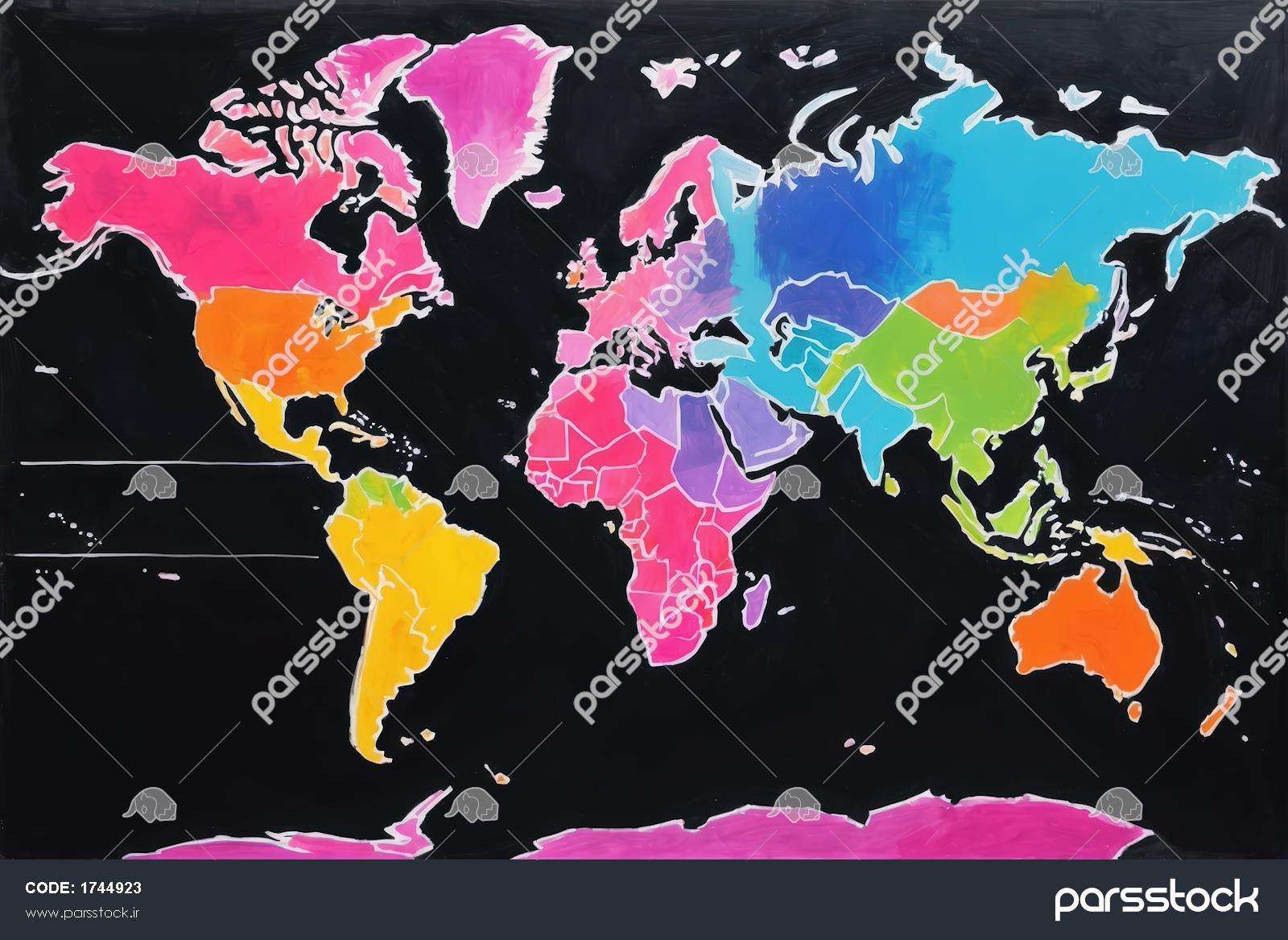 نقشه جهان با رنگهای گرم و زنده (نارنجی، صورتی) روی پسزمینه سیاه نقشه جهان رنگارنگ نئونی روی پسزمینه مشکی، طرح انتزاعی آبرنگی نقشه جهان طلایی روی بافت مرمری سفید و خاکستری (نقشه دکوراتیو لوکس با بافت سنگی، رنگهای روشن و متالیک) نقشه برجسته جهان سیاه و سفید با تفکیک کشورها، طرح مدرن ۳بعدی نقشه جهان با بافت آبرنگی رنگینکمانی بر پسزمینه تیره، طرح هنری نقشه جهان آبرنگی با تونالیتههای رنگی عمیق روی زمینه سفید نقشه جهان با رنگهای جداگانه کشورها در سبک آبرنگ، طرح هندسی نقشه جهان آبرنگی با اقیانوسهای آبی روشن، طرح کودکانه و شاد نقشه جهان آبرنگی با غلظت رنگ بالا، طرح مدرن رنگینکمانی نقشه جهان آبرنگی با سایهروشنهای آبی و سبز، طرح هنری ملایم نمایش همه
