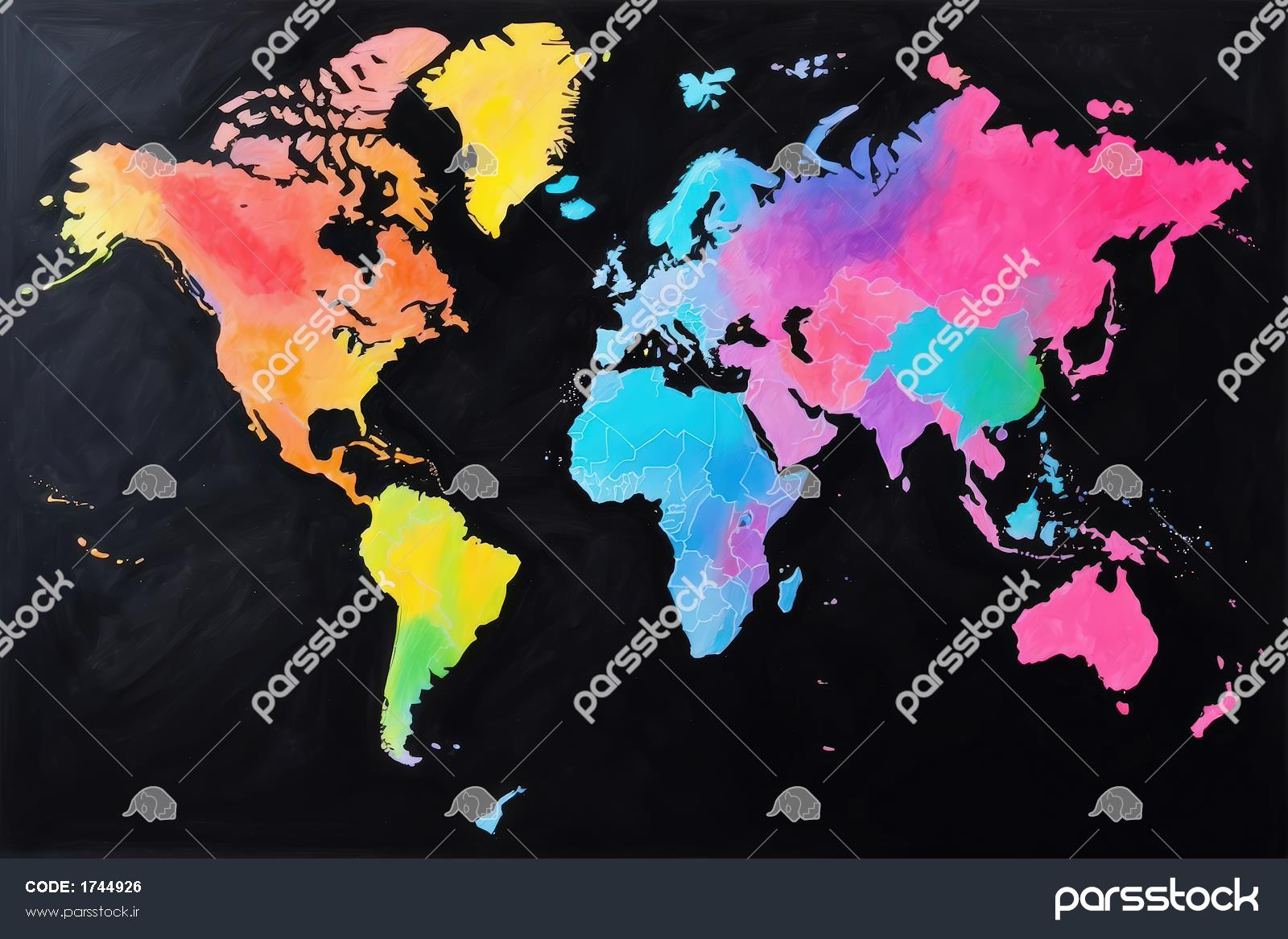 نقشه جهان با رنگهای متنوع و بافت آبرنگی بر زمینه مشکی، طرح شاد نقشه جهان آبرنگ رنگینکمانی روی کاغذ سفید، طرح هنری و شاد نقشه جهان رنگارنگ نئونی روی پسزمینه مشکی، طرح انتزاعی آبرنگی نقشه جهان آبرنگی با لکههای رنگی، طرح هنری انتزاعی و زنده نقشه جهان آبرنگی با غلظت رنگ بالا، طرح مدرن رنگینکمانی نقشه جهان با ترکیب رنگهای آبرنگی ملایم بر زمینه تیره، طرح فانتزی نقشه جهان انفجار رنگ بر زمینه سفید، طرح اسپری آبرنگی انتزاعی نقشه جهان آبرنگی با سایهروشنهای آبی و سبز، طرح هنری ملایم نقشه جهان با بافت کهنه، طرح واترکالر سیاه و سفید دارک نقشه جهان آبرنگی با اقیانوسهای آبی روشن، طرح کودکانه و شاد مشاهده همه