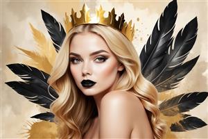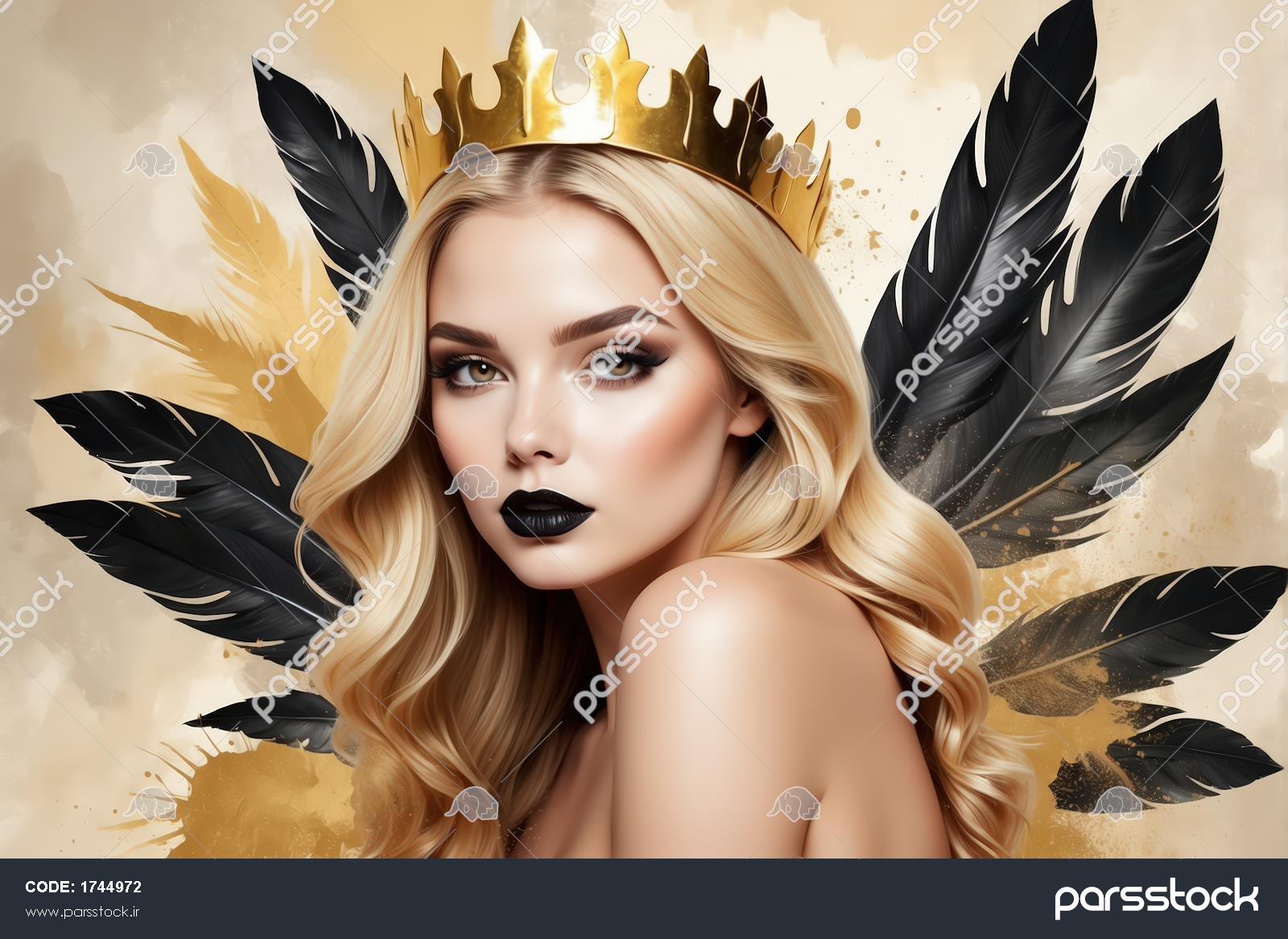 تصویر پرتره ملکه طلایی و مشکی با آرایش تیره (زن بلوند با تاج و پرهای سیاه و طلایی در پسزمینه بژ و لوکس) پرتره ملکه بلوند با تاج و پرهای مشکی و طلایی (تصویر زن با موهای موجدار، آرایش تیره و پسزمینه لوکس سیاه و طلایی) پرتره زن سلطنتی با تاج و شنل پردار مشکی و طلایی (تصویر دکوراتیو بلوند با آرایش چشم اسموکی و پسزمینه بژ) پرتره ملکه بلوند با بال فرشتهای طلایی و تاج شاهانه (تصویر دکوراتیو زن با موی طلایی، تاج و پسزمینه سیاه و طلایی) پرتره ملکه بلوند با تاج طلایی و پرهای سرخ (تصویر دکوراتیو زن با موهای موجدار روشن، رژلب قرمز و پسزمینه سلطنتی) پرتره الهه طبیعت با تاج برگ طلایی و پرهای درخشان (تصویر زن با موی قهوهای، لباس مشکی و جواهرات طلایی) پرتره الهه طلایی درخشان با تاج برگ و بالهای بزرگ (تصویر زن با موی روشن، جواهرات گردنی و پسزمینه بوکه دار) پرتره زن سلطنتی با تاج پردار طلایی و لباس مجلسی مشکی و طلایی در بکگراند لاکچری پرتره نیمرخ زن با آرایش قرمز، تاج برگ طلایی و بالهای پر؛ الهه یونانی پرتره ملکه یا الهه با تاج و جواهرات طلایی، زن اشرافی با هاله طلایی و آسمان پر ستاره مشاهده همه