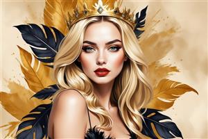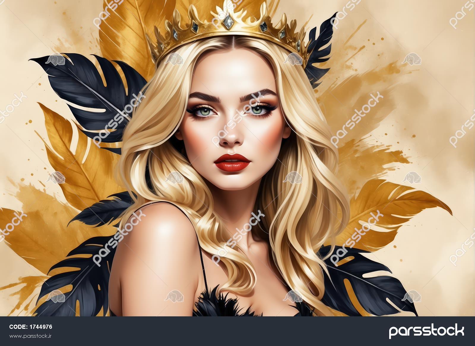 تصویر هنری پرتره فرشته ای با بال های آتشین، تاج سلطنتی و ژست الهی پرتره ملکه بلوند با تاج و گردنبند سنگ قرمز، بانوی سلطنتی با لباس آبی و طلایی پرتره ملکه یا الهه با تاج و جواهرات طلایی، زن اشرافی با هاله طلایی و آسمان پر ستاره پرتره ملکه تاریکی با تاج طلایی: زن با بالهای شانهای از برگ طلایی و لباس مشکی توری ملکه جنگل طلایی: پرتره زن با بالهای طلایی، تاج طلایی و برگ سبز بزرگ مونسترا پرتره زن با لباس طلایی مجلسی و تاج در قاب شاخ و برگهای طلایی روی پسزمینه تیره پرتره شاهزاده خانم با موهای مواج تیره و تاج گل و پروانه، لباس آبی طلایی مجلسی، نقاشی فانتزی با کیفیت عالی پرتره دختر با موهای بلند تیره و تاج گل طبیعی، لباس آبی سنتی و جواهرات طلایی فیروزهای، مناسب دکوراسیون ایرانی پرتره دختر با آرایش غلیظ و جواهرات بزرگ، لباس آبی سلطنتی و تاج گل پررنگ، کنتراست رنگی بالا برای چاپهای عریض پرتره زن سلطنتی با تاج و گردنبند طلایی بزرگ در پسزمینه شاخ و برگ، طرح دکوراسیون نمایش همه