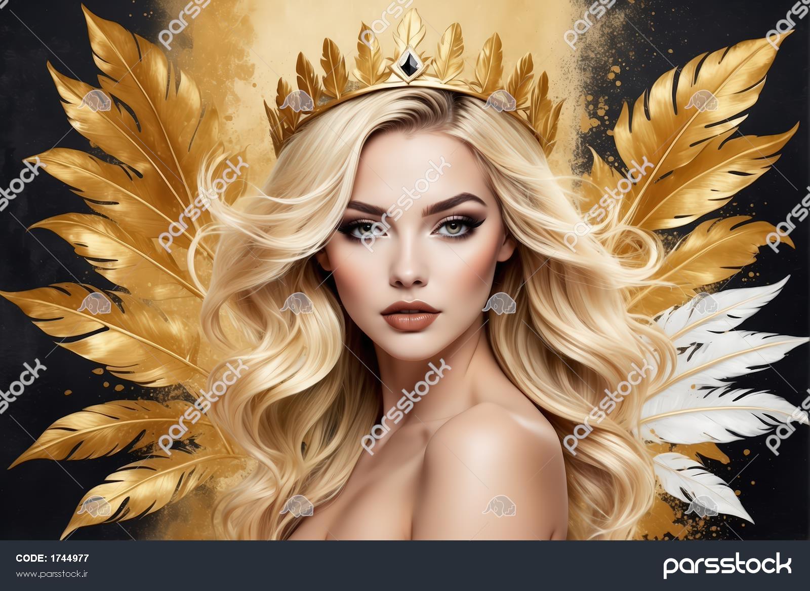پرتره زن سلطنتی با تاج و شنل پردار مشکی و طلایی (تصویر دکوراتیو بلوند با آرایش چشم اسموکی و پسزمینه بژ) پرتره زن بلوند با تاج و پرهای سیاه و طلایی (تصویر ملکه با آرایش اسموکی و رژلب مشکی در پسزمینه بژ آبرنگی) پرتره ملکه بلوند با تاج و پرهای مشکی و طلایی (تصویر زن با موهای موجدار، آرایش تیره و پسزمینه لوکس سیاه و طلایی) پرتره ملکه بلوند با تاج طلایی و پرهای سرخ (تصویر دکوراتیو زن با موهای موجدار روشن، رژلب قرمز و پسزمینه سلطنتی) تصویر پرتره ملکه طلایی و مشکی با آرایش تیره (زن بلوند با تاج و پرهای سیاه و طلایی در پسزمینه بژ و لوکس) پرتره الهه طلایی درخشان با تاج برگ و بالهای بزرگ (تصویر زن با موی روشن، جواهرات گردنی و پسزمینه بوکه دار) پرتره الهه طبیعت با تاج برگ طلایی و پرهای درخشان (تصویر زن با موی قهوهای، لباس مشکی و جواهرات طلایی) پرتره زن سلطنتی با تاج پردار طلایی و لباس مجلسی مشکی و طلایی در بکگراند لاکچری ملکه جنگل طلایی: پرتره زن با بالهای طلایی، تاج طلایی و برگ سبز بزرگ مونسترا پرتره ملکه تاریکی با تاج طلایی: زن با بالهای شانهای از برگ طلایی و لباس مشکی توری مشاهده همه