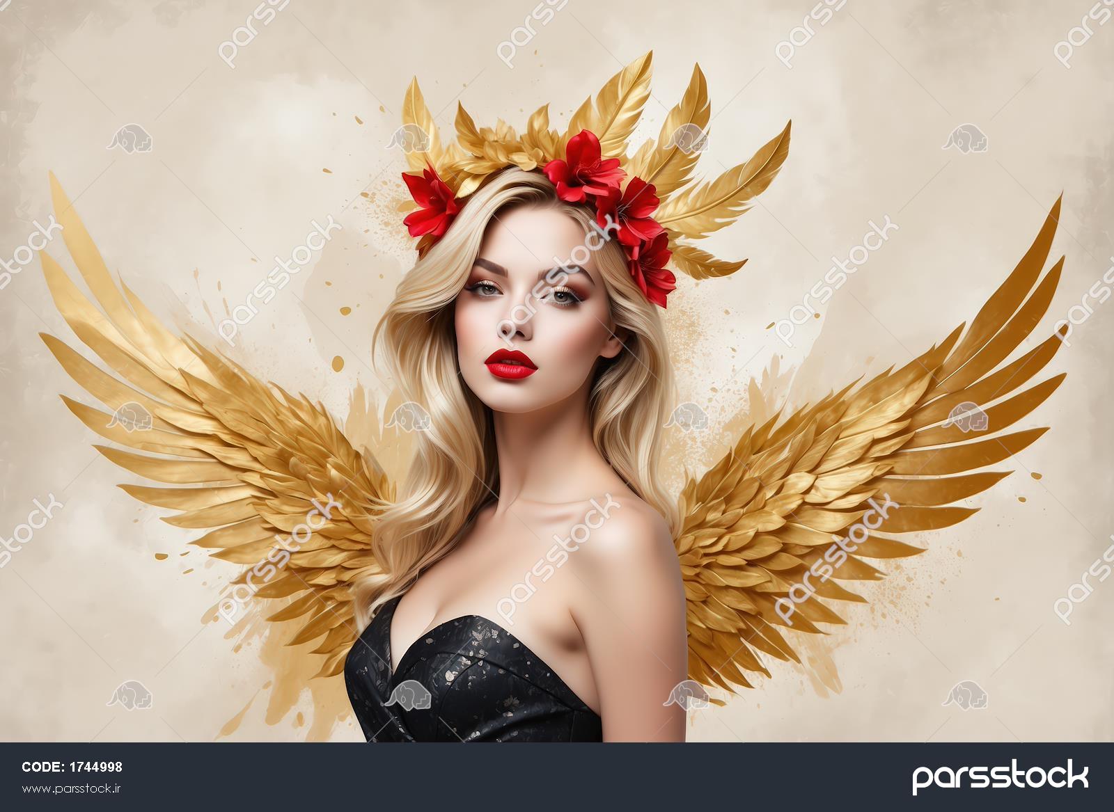 تابلو فرشته بلوند طلایی: پرتره زن با تاج گل و بالهای بزرگ طلایی در لباس دکلته تابلو بالهای زرین: پرتره زن با لباس طلایی، تاج پهن و بالهای شانه طلایی بزرگ فرشته گلهای سرخ و طلایی: پرتره زن بلوند با تاج گل رز قرمز و بالهای طلایی بزرگ ملکه جنگل طلایی: پرتره زن با بالهای طلایی، تاج طلایی و برگ سبز بزرگ مونسترا ملکه زرین و سرخ: زن بلوند با بالهای برگ طلایی بزرگ و لباس طلایی در پسزمینه دو رنگ پرتره الهه طلایی: زن با بالهای بزرگ و تاج برگ زیتون طلایی برای چاپ دکوراتیو پرنسس سفید برفی در لباس رسمی با یقهی بزرگ قرمز و تاج نگیندار فرشته بلوند با بالهای طلایی بزرگ و لباس طلایی، نماد قدرت و زیبایی تصویر کامل ملکه پروانه با بالهای بزرگ و لباس سلطنتی قرمز و طلایی الهه سرخ و زرین: پرتره زن بلوند با تاج برگ و رز بزرگ در پسزمینه گرمسیری مشاهده همه
