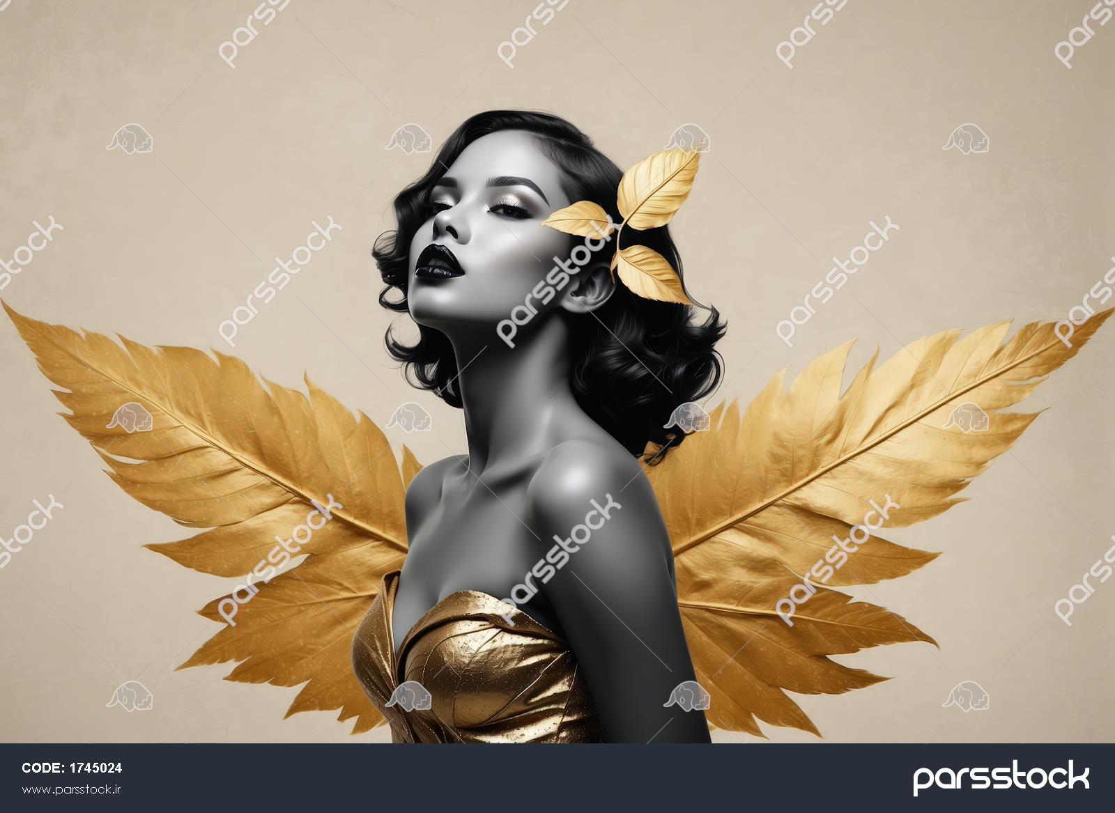 مدل زن با لباس برگ سبز و تاج طلایی با بال؛ تابلوی الهام گرفته از طبیعت فرشته زنانه با بالهای پر طلایی و لباس براق؛ عکس دکوراتیو لوکس مدلینگ زن با بالهای طلایی و لباس طرحدار؛ مناسب چاپ باکیفیت عریض خلق هنری از فرشته ای با بال های درخشان، موهای فر طلایی و لباس بلند در زمینه تیره پرتره فرشته با بال و لباس طلایی؛ مناسب چاپ باکیفیت برای پذیرایی تصویر تمام قد زن با موی بلوند، لباس چرمی و بال طلایی بزرگ؛ پوسترهای دیواری تصویر فشن زن بلوند با لباس چرمی و بالهای طلایی؛ طرح خاص دکوراتیو خلق هنری از فرشته با بال های درخشان و موهای فر طلایی و لباس بلند فرشته باشکوه با بالهای طلایی و لباس سفید و طلایی، تصویر هنری الهه پرتره پری جنگلی طلایی و مرموز با بال و لباس برگ (تصویر زن با موی قهوهای، لباس تیره و طبیعت سبز) مشاهده همه