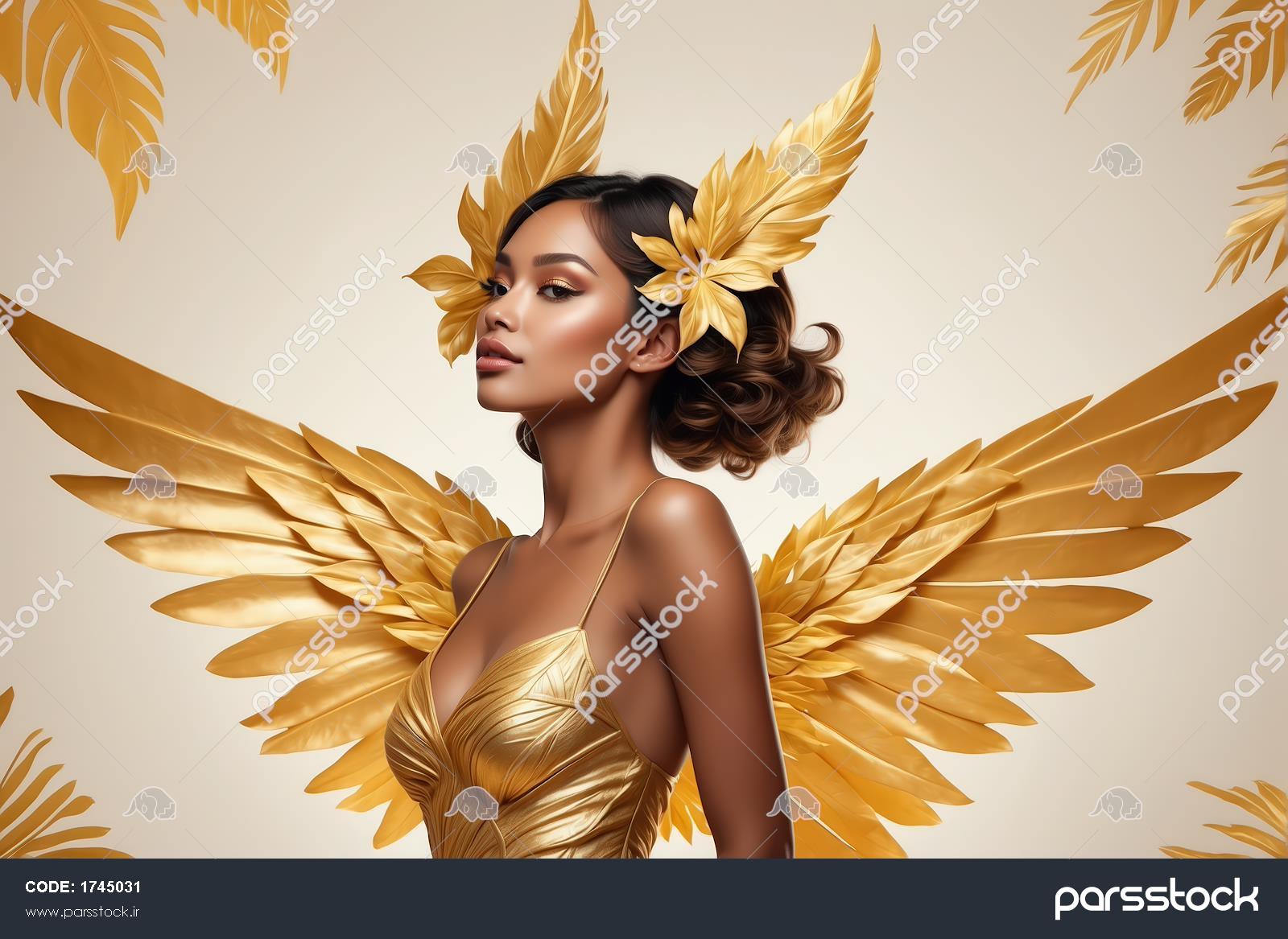 فرشته زنانه با بالهای پر طلایی و لباس براق؛ عکس دکوراتیو لوکس پرتره نیمرخ زن با آرایش قرمز، تاج برگ طلایی و بالهای پر؛ الهه یونانی مدلینگ زن با بالهای پهن طلایی و پس زمینه لوکس؛ عکس باکیفیت استودیویی پرتره فرشته با بال و لباس طلایی؛ مناسب چاپ باکیفیت برای پذیرایی تصویر نیمرخ فرشته سیاه پوست با بالهای طلایی بزرگ و تاج پر پرتره مدل زن با آرایش تیره و بالهای پهن طلایی؛ عکس دکوراسیون مدرن پوستر فرشته سفید: زن بلوند با بالهای پر سفید و تاج گل رز قرمز بر زمینه طلایی مدل زن با لباس برگ سبز و تاج طلایی با بال؛ تابلوی الهام گرفته از طبیعت تصویر فشن زن با موی نقرهای، آرایش طلایی و پروانه های آبرنگی مدلینگ زن با بالهای طلایی و لباس طرحدار؛ مناسب چاپ باکیفیت عریض مشاهده همه