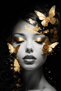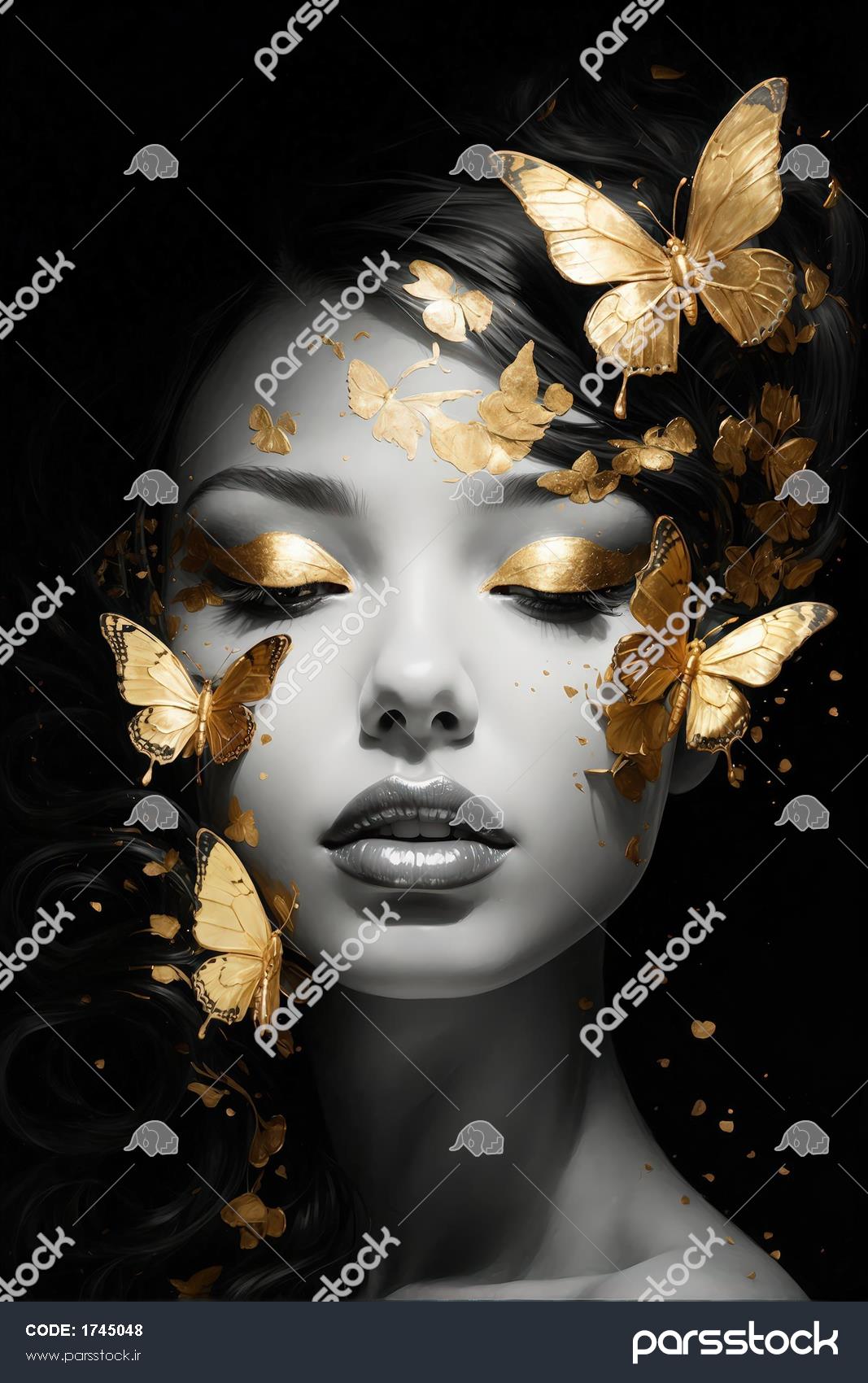 پرتره لوکس زنانه با آرایش چشم طلایی و پروانه؛ طرح مدرن برای دکوراسیون