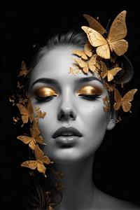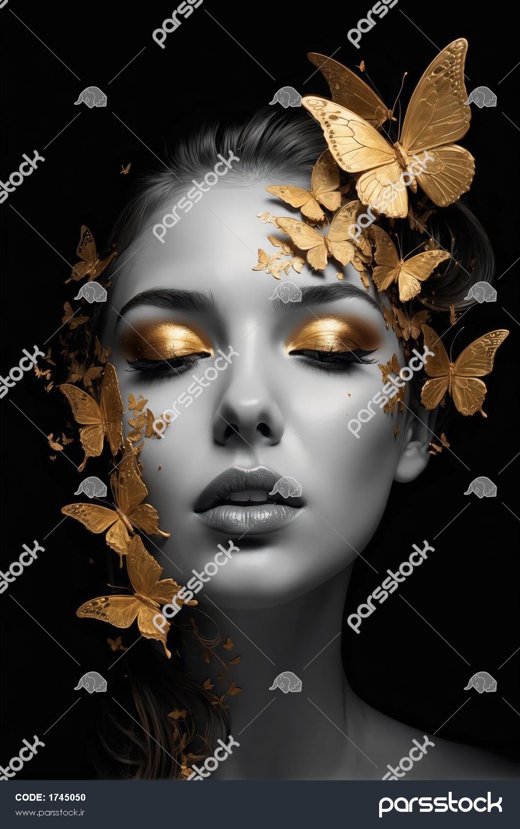 پرتره لوکس زنانه با آرایش چشم طلایی و پروانه؛ طرح مدرن برای دکوراسیون پرتره الهه مو مشکی با تاج طلایی و پروانه؛ طرح لوکس و هنری تصویر فشن سیاه سفید با پروانه های طلایی و آرایش خیره کننده؛ مناسب چاپ تصویر پرتره زن با آرایش طلایی و پروانه های گرافیتی؛ عکس فشن سیاه سفید طرح گرافیتی فشن زن با پروانه، گل سفید و آرایش طلایی؛ تابلوی دکوراتیو مدلینگ زن با لب و چشم طلایی و پروانه سه بعدی؛ تابلوی دیواری جذاب تصویر فشن زن با موی نقرهای، آرایش طلایی و پروانه های آبرنگی ملکه با سربند طلایی و پروانه؛ تصویر پرتره فشن لوکس برای پوستر تصویر پرتره زن مرموز با پروانه و جزئیات طلایی؛ مناسب چاپ عریض تصویر فانتزی زن با پیچکها و پروانه های طلایی؛ عکس دکوراتیو جذاب مشاهده همه