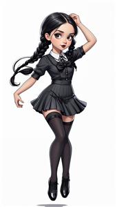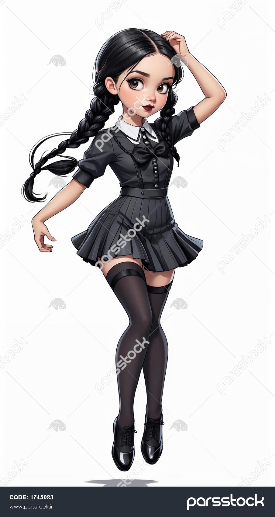 ونزدی آدامز با پوز و استایل پرش و جوراب بلند (تصویرسازی گرافیکی متحرک)
