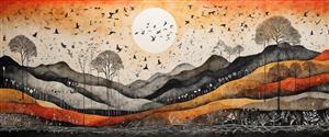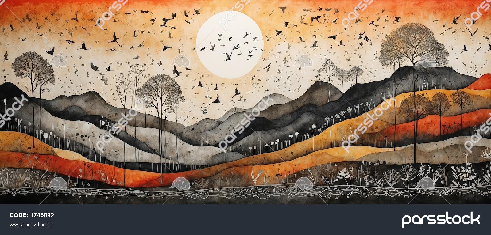 زن در مسیر کنار دریاچه در غروب پاییزی، نقاشی منظره طبیعت با درختان و کوهستان، تصویرسازی غروب در جنگل نقاشی گرگ زوزه کش با جزئیات خز در برابر ماه کامل و درختان کاج (سبک آبرنگ) نقاشی عمودی رودخانه در دره با درختان و خانههای قبیلهای، ترکیب رنگ گرم و تیره نقاشی منظره رودخانه پیچان در دره کوهستانی با طیف رنگی نارنجی و سیاه، طرح عمودی نقاشی مناظر کوهستانی با رودخانه و گله گوزنها و درختان پاییزی، طرح پانوراما رودخانه در دل کوههای مهآلود با درختان خشک (تابلوی هنری دکوراتیو با کنتراست ملایم) منظره غروب کوهستان و دریاچه (نقاشی آبرنگی با تم سیاه و قرمز) نقاشی عمودی رودخانه در کوهستان با رنگهای قرمز و آبی و خانههای چوبی، طرح مدرن مراسم قبیلهای زیر درختان سایهدار (تصویرسازی انتزاعی با جزئیات هندسی) نقاشی انتزاعی از کوهستان و رودخانه سنگی با درختان و رنگهای نارنجی و قهوهای تیره نمایش همه