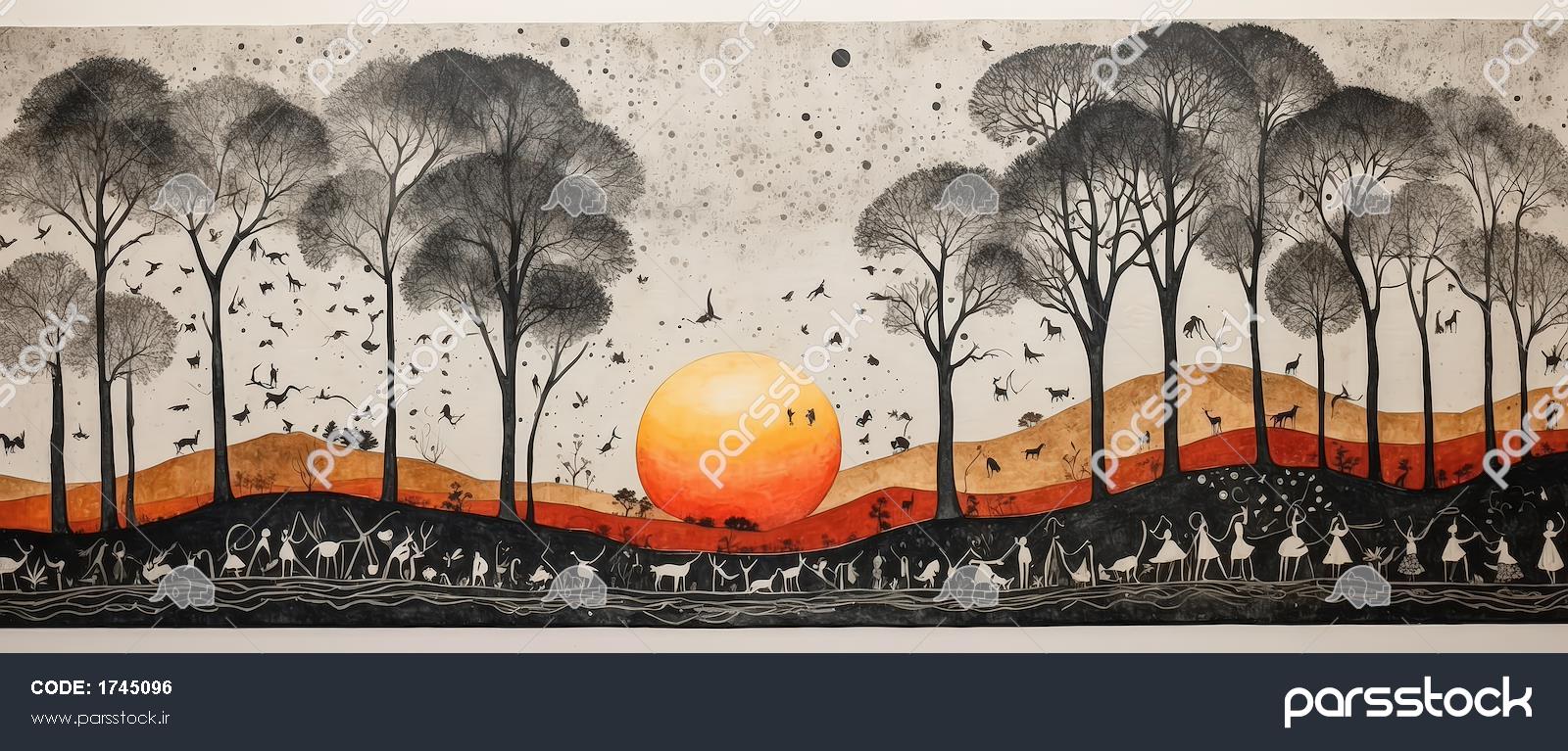 درخت غولپیکر پاییزی در غروب آفتاب، منظره وسیع جنگل با درخت نارنجی بزرگ و آسمان زیبا مراسم قبیلهای زیر درختان سایهدار (تصویرسازی انتزاعی با جزئیات هندسی) منظره نقاشی آبرنگی عمودی از رودخانه و کوهستان با غروب طلایی و گله گوزنها رودخانه در دل کوههای مهآلود با درختان خشک (تابلوی هنری دکوراتیو با کنتراست ملایم) پرتره زن قبیلهای سیاه در حال تماشای غروب نارنجی از بالای صخره، طرح عمودی منظره عریض کوهستان با دریاچه و طلوع/غروب آفتاب طلایی و قرمز، طرح آبستره نقاشی آبرنگی گرگ سیاه در غروب آبی و زرد در جنگل (پوستر دکوراتیو) تصویر گرافیکی رز سفید طلایی با برگهای پردار روی زمینه مشکی، سبک قلمزنی کلاسیک و تیره نقاشی عمودی رودخانه در کوهستان با رنگهای قرمز و آبی و خانههای چوبی، طرح مدرن نقاشی عمودی رودخانه در دره با درختان و خانههای قبیلهای، ترکیب رنگ گرم و تیره نمایش همه