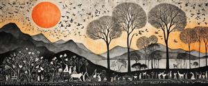 نقاشی عریض دشت و گوزنها با درختان گرد و غروب خورشید نارنجی، طرح مدرن منظره نقاشی آبرنگی عمودی از رودخانه و کوهستان با غروب طلایی و گله گوزنها تابلو عریض کوهستان و درختان با غروب یا طلوع نارنجی، طرح آبستره تیره و روشن نقاشی افقی کوهستان با تپههای نارنجی و درختان گرد در پسزمینه رقص قبیلهای، کنتراست بالا نقاشی مناظر کوهستانی با رودخانه و گله گوزنها و درختان پاییزی، طرح پانوراما نقاشی منظره رودخانه پیچان در دره کوهستانی با طیف رنگی نارنجی و سیاه، طرح عمودی نقاشی عمودی رودخانه در کوهستان با رنگهای قرمز و آبی و خانههای چوبی، طرح مدرن نقاشی گله گوزنها در کنار رودخانه زیر درخت بزرگ، طرح افقی با رنگهای سیاه و طلایی نقاشی عمودی رودخانه در دره با درختان و خانههای قبیلهای، ترکیب رنگ گرم و تیره نقاشی آبرنگ عمودی کوهستان با رودخانه و ماه طلایی در طیف رنگی نارنجی و قرمز مشاهده همه