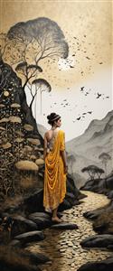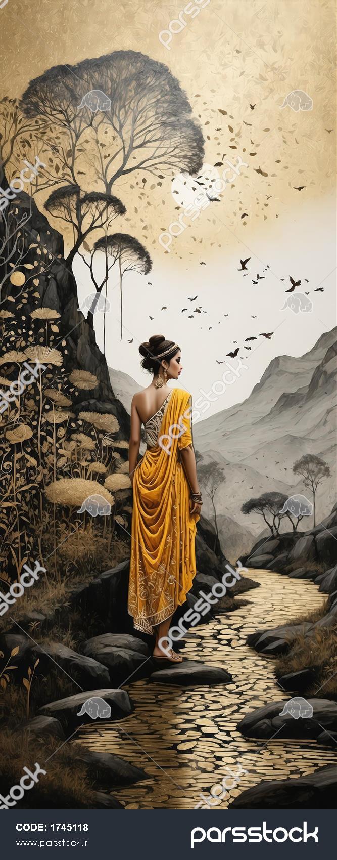 زن با لباس زرد سنتی از پشت در حال قدم زدن در دشت کوهستانی طلایی، پوستر عمودی زن ایزدبانوی گوزن از پشت با لباس سفید در جنگل طلایی، تابلو عمودی با گوزنهای صحرایی زن با لباس مجلسی طلایی دنبالهدار در کنار ماه بزرگ در فضای شب، تابلو دکوراتیو شیک تابلو زن افسانهای با شاخ گوزن و لباس سنتی نارنجی در جنگل تاریک و گوزنهای سفید طرح زن افسانهای با شاخ و لباس نارنجی در کوهستان و حضور گوزنهای سفید، تابلو دکوراتیو زن با لباس سنتی طلایی و مشکی در حال بالا رفتن از پلهها با ماه بزرگ در پسزمینه پرنده زیبا نقاشی و نگارگری اثر رحیم عظیمی طرح زن ایزدبانو با لباس زرد و تاج شاخ گوزنی طلایی و گوزنهای سفید، پرتره دکوراتیو گل و مرغ نگارگری نقاشی مینیاتور ایرانی زیبا اثر رحیم عظیمی تابلو دکوراتیو نقاشی ایرانی پیرمرد ریش سفید با لباس سنتی رنگی مشاهده همه