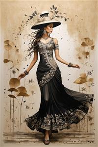 پرتره نیمرخ زن با لباس فاخر مشکی و طلایی و کلاه لبه پهن در دکوراسیون طرح طاق و گنبد زن با لباس مجلسی دو رنگ و کلاه بزرگ مخروطی در طرحهای آبرنگی با تم گیاهی تیره زوج شیکپوش در لباس قرمز و مشکی با چتر بادبزنی بزرگ در دکوراسیون طرح گیاهی طرح برجسته قدم زدن عاشقانه زن و مرد در لباسهای رسمی زن با لباس فاخر مشکی و کلاه آراسته به گلهای طلایی در پسزمینه گیاهی درخشان تصویر زوج شیکپوش با لباس فاخر در سیلُئت طلایی و مشکی روی زمینه طرح گیاهی زن با لباس مجلسی زرد و مشکی بلند با پسزمینه طرح گیاهی و برگهای پاییزی زن زیبا با لباس فاخر سنتی سیاه و سفید و کلاه تاجمانند در پسزمینه گیاهی قهوهای زن با لباس مشکی و کرم مجلسی و کلاه فانتزی در دکوراسیون با دایرههای قرمز و طلایی زن با لباس مجلسی طرحدار کرم و مشکی و کلاه حصیری در میان هالهای از نقوش طلایی مشاهده همه