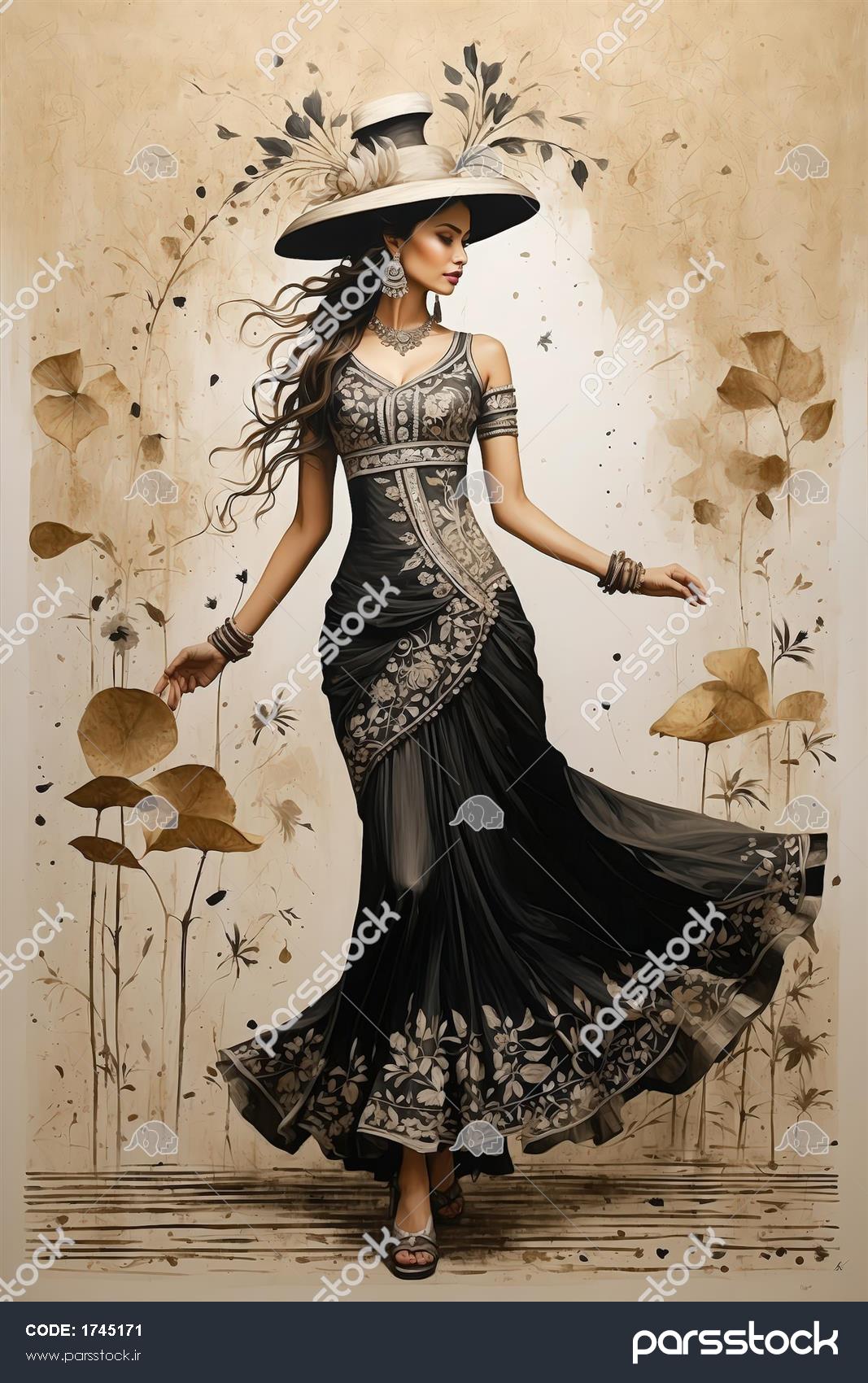 زن با لباس فاخر کرم و مشکی دنبالهدار و کلاه بزرگ لبهپهن در محیط آبرنگی لوکس طرح زن با لباس فشن مشکی و طلایی و کلاه بزرگ (استایل آرت دکو) زن شیک با لباس مشکی مجلسی گلدوزی شده و کلاه فانتزی در باد روی پسزمینه طلایی زن با لباس مجلسی دوتکه مشکی و طلایی و کلاه فانتزی در زمینه کاشیکاری شده مدل زن با لباس بلند مجلسی کرم و طلایی و کلاه بزرگ، در دکوراسیون دیواری لوکس زن با لباس مجلسی بلند کرم و مشکی و کلاه بزرگ مخروطی در پسزمینه برگهای قهوهای زن شیکپوش با کلاه لبه پهن بزرگ و لباس طلایی و مشکی در میان گیاهان آبستره پرتره مدل زن با لباس طلایی و مشکی و کلاه لبهدار مخروطی در پسزمینه آبرنگی زن شیکپوش با لباس مجلسی مشکی و کلاه فانتزی در میان برگهای بادزده مدل زنانه با لباس مجلسی مشکی و طلایی طرحدار در میان نقوش گیاهی روی دیوار کرم نمایش همه
