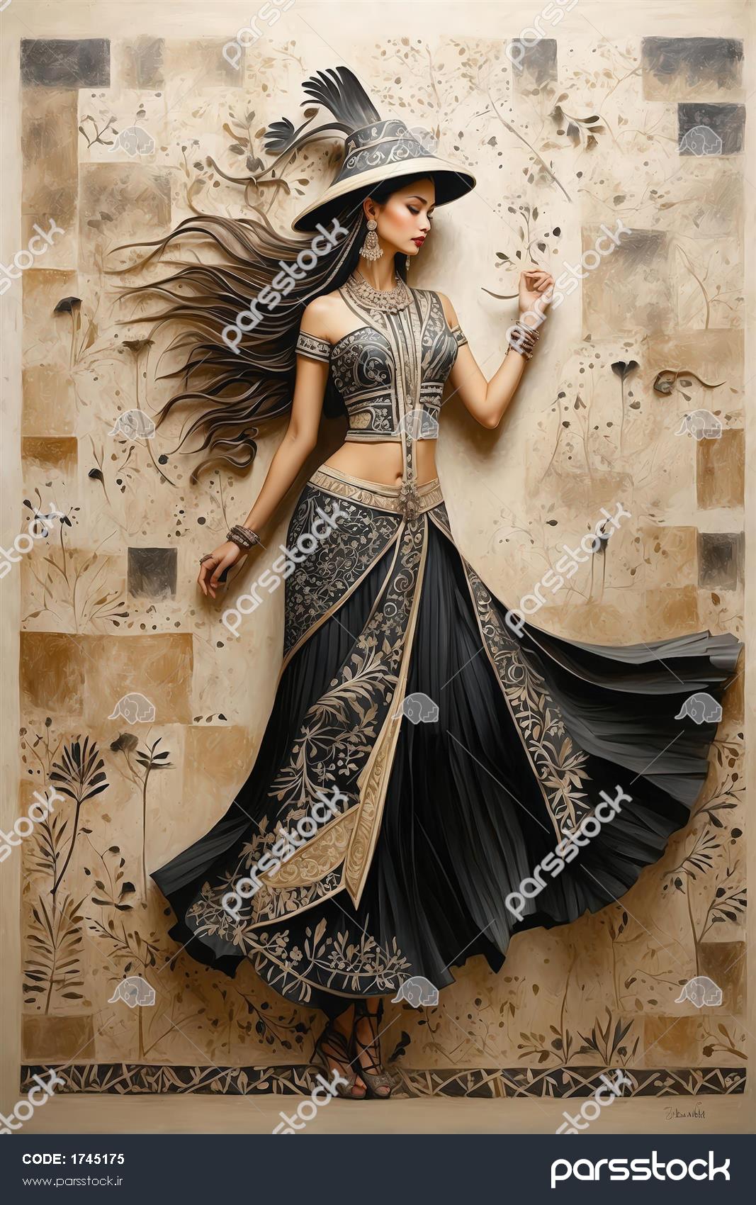 زن شیکپوش با کلاه لبه پهن بزرگ و لباس طلایی و مشکی در میان گیاهان آبستره پرتره مدل زن با لباس طلایی و مشکی و کلاه لبهدار مخروطی در پسزمینه آبرنگی پرتره نزدیک مدل زن با لباس کرم و کلاه مشکی مجلل و جواهرات بزرگ طلایی زن شیکپوش با لباس مجلسی مشکی و کلاه فانتزی در میان برگهای بادزده زن با لباس فاخر کرم و مشکی دنبالهدار و کلاه بزرگ لبهپهن در محیط آبرنگی لوکس تصویر زوج شیکپوش با لباس فاخر در سیلُئت طلایی و مشکی روی زمینه طرح گیاهی زن با لباس مجلسی تیره و کلاه لبهدار در حال قدم زدن در دکوراسیون طرح گیاهی کلاسیک زن با لباس طلایی و آهوها در قاب طاقدار زیر درخت طلایی و سیاه، نمای جانبی زن با لباس مجلسی بلند کرم و مشکی و کلاه بزرگ مخروطی در پسزمینه برگهای قهوهای پرتره مدل زن با لباس فاخر سنتی و کلاه پردار در زمینه مشکی و طلایی لوکس نمایش همه