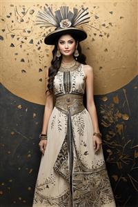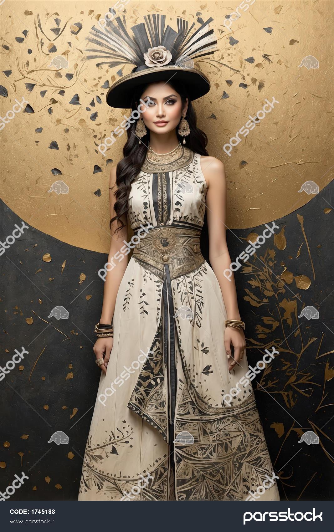 زن با لباس مجلسی طرحدار کرم و مشکی و کلاه حصیری در میان هالهای از نقوش طلایی زن با لباس فاخر کرم و مشکی دنبالهدار و کلاه بزرگ لبهپهن در محیط آبرنگی لوکس زن شیکپوش با لباس مجلسی فاخر سیاه و سفید و کلاه لبه پهن روی پسزمینه هنری طلایی زن زیبا با لباس فاخر سنتی سیاه و سفید و کلاه تاجمانند در پسزمینه گیاهی قهوهای مدل زنانه با لباس مجلسی مشکی و طلایی طرحدار در میان نقوش گیاهی روی دیوار کرم زن با لباس مشکی و کرم مجلسی و کلاه فانتزی در دکوراسیون با دایرههای قرمز و طلایی زن شیکپوش با کلاه لبه پهن بزرگ و لباس طلایی و مشکی در میان گیاهان آبستره مدل زن با کلاه آفتابی بزرگ طلایی و لباس مجلسی دو رنگ، صحنه رقص در سالن مجلل مدل زن با کلاه و لباس شب مشکی طلایی با پارچه موجدار، عکس فشن لاکچری پرتره سه بعدی دختر با کلاه طلایی و لباس فشن نمایش همه