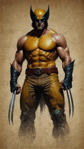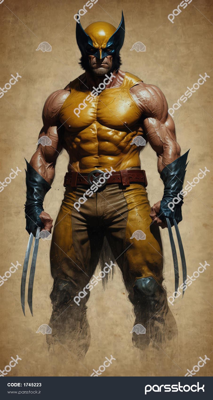وولورین کلاسیک تمام قد در لباس زرد و قهوه‌ای با پنجه‌های کشیده