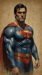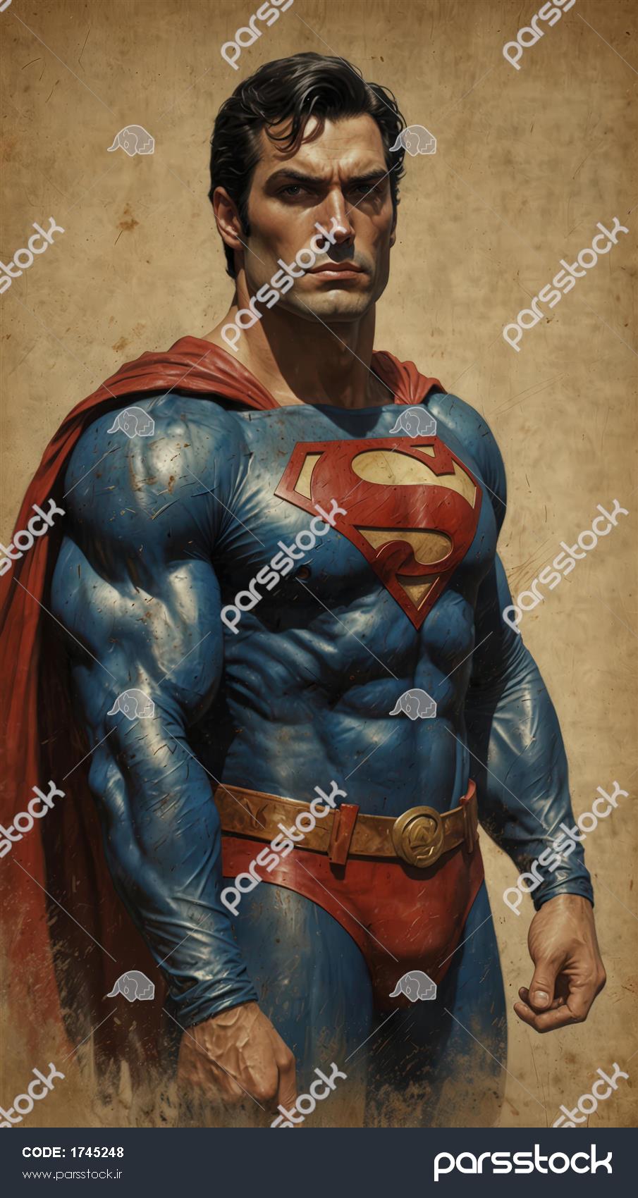 تابلوی دکوراتیو پرتره سوپرمن، تصویر باکیفیت بالا با جزئیات عضلانی و پس‌زمینه قدیمی
