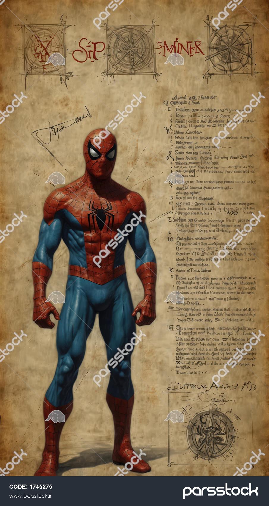 تصویر اسپایدرمن در ژست آمادگی بر روی پسزمینه بافتدار و نوشتار قدیمی، طرح دکور طرح کامل آیرون من با حاشیههای طراحی مهندسی (بلورپرینت) و یادداشت، طرح منحصر به فرد طرح دوگانه اسپایدرمن در کنار هم (مطالعه لباس)، کیفیت بالا برای چاپ دکوراتیو طرح مرد عنکبوتی با لباس جدید با رنگهای آبی، قرمز و سفید طرح باکیفیت عالی از زره آیرون من با تمرکز بر جزئیات و انرژی آرک راکتور، مخصوص پوستر تصویر کامل اسپایدرمن با متون و نقاشیهای حاشیهای الهام گرفته از لئوناردو داوینچی نمای نیمتنه آیرون من با زره دقیق و نور چشمهای آبی، طرح باکیفیت چاپ عریض تصویر تمام قد اسپایدرمن در حالت اکشن ، کیفیت عالی برای پوستر و دکور تصویر اورجینال مرد عنکبوتی در حالت پرش یا فرود، طرح باکیفیت برای پوستر دیواری با تم قدیمی پرتره زره آیرون من (مرد آهنی) با تمرکز بر جزئیات فنی و خطوط طراحی، طرح دکور مشاهده همه