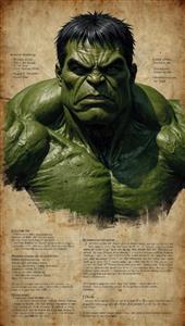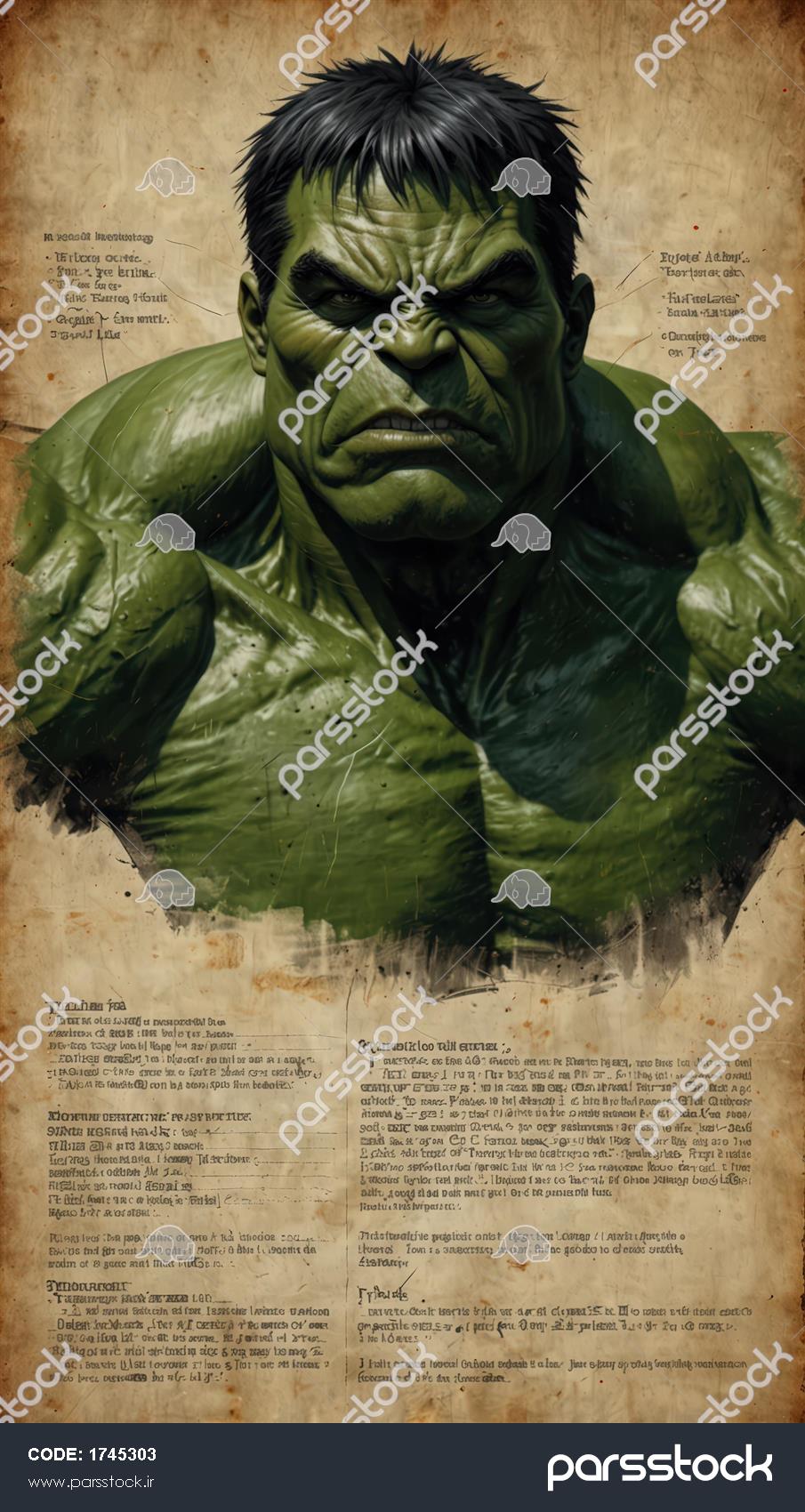 پرتره هالک باکیفیت فوق‌العاده با متون طراحی اولیه بر روی پس‌زمینه قدیمی، طرح دکور