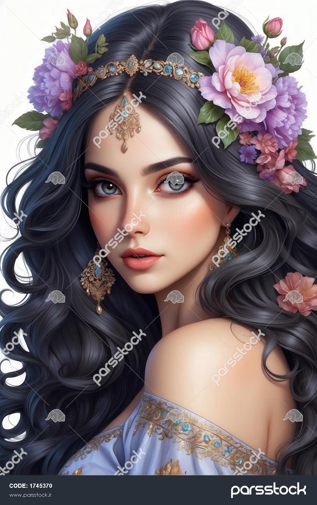 پرتره دختر شرقی با موهای تیره و لباس بنفش سلطنتی، جواهرات فیروزهای و تاج گل، مناسب چاپ تابلو و پوستر فاخر پرتره دختر با موهای بلند و لباس آبی فیروزهای، گلدوزی طلایی و تاج گل نارنجی، تم کلاسیک شرقی برای چاپ بوم پرتره دختر در لباس آبی گلدوزی شده، با تاج گل یاسی و پسزمینه باغ و عمارت تاریخی، مناسب چاپهای دکوراتیو فاخر پرتره دختر با موهای بلند تیره و تاج گل طبیعی، لباس آبی سنتی و جواهرات طلایی فیروزهای، مناسب دکوراسیون ایرانی پرتره کلوزآپ دختر خندان با موهای آبی رنگینکمان و تاج گل پاییزی، نقاشی دیجیتال شاد و پر انرژی برای چاپ پرتره زن زیبا با موی آبی فانتزی و تاج گل رز در محیط گلدار روشن پرتره دختر خندان با موهای رنگی و تاج گلهای پاییزی، تم شاد و سرزنده، مناسب پوستر و چاپ پرتره دختر در بادی دانتل آبی و طلایی، موهای بلند مواج و تاج گل، تصویر فانتزی و جذاب برای چاپ دکوراتیو پرتره دختر شاد با موهای مواج چند رنگ و تاج گلهای درشت، تم فانتزی و پر انرژی، مناسب چاپ بوم نقاشی پرتره دختر شرقی با موهای مواج تیره، تاج گل و لباس آبی فیروزهای مجلسی، نقاشی دیجیتال سلطنتی برای تابلو مشاهده همه