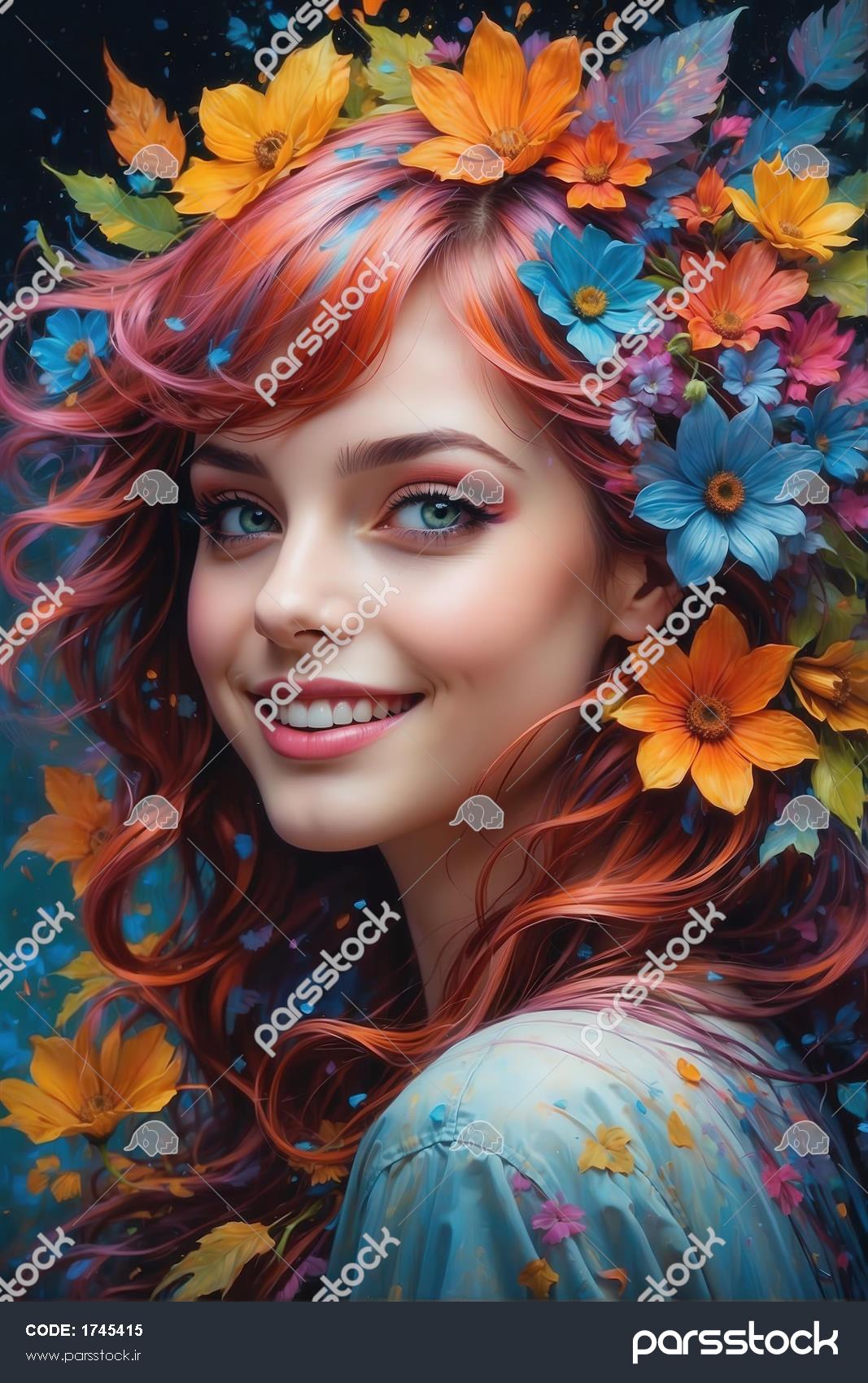 پرتره با جزئیات بالا زن با موهای مجعد بنفش و صورتی و گلهای زرد و فیروزهای برای طراحیهای گرافیکی پرتره پروفایل زن با نور ملایم، احاطه شده با گلهای رز قرمز و برگهای آبی و طلایی برای چاپ گالری تصویر پرتره شاد زن با موهای رنگارنگ و لبخند زیبا در میان باغی از گلهای زنده برای چاپ روی بوم پرتره با کیفیت از بانوی طبیعت با موهای رنگارنگ و برگهای پاییزی و گلهای نارنجی و آبی برای چاپ بوم پرتره باکیفیت زن شاد با موهای حنایی و تاج برگهای پاییزی و گلهای رنگارنگ برای چاپ عریض دکوراتیو پرتره سلفی مانند زن با نور و سایه دراماتیک، احاطه شده با گلهای رنگی و موهای درخشان برای دکوراسیون عکس هنری زن در حال خنده با چشمان بسته، احاطه شده با گلهای شاد و موهای درخشان برای چاپ گالری پرتره زن جذاب با موی نارنجی و صورتی در زمینه گلهای درخشان و لباس شب آبی تیره پرتره سینه باز زن خندان با موهای فانتزی صورتی و آبی و لباس گلبرگی آغشته به گلهای آفتابگردان پرتره کلوزآپ دختر خندان با موهای آبی رنگینکمان و تاج گل پاییزی، نقاشی دیجیتال شاد و پر انرژی برای چاپ نمایش همه