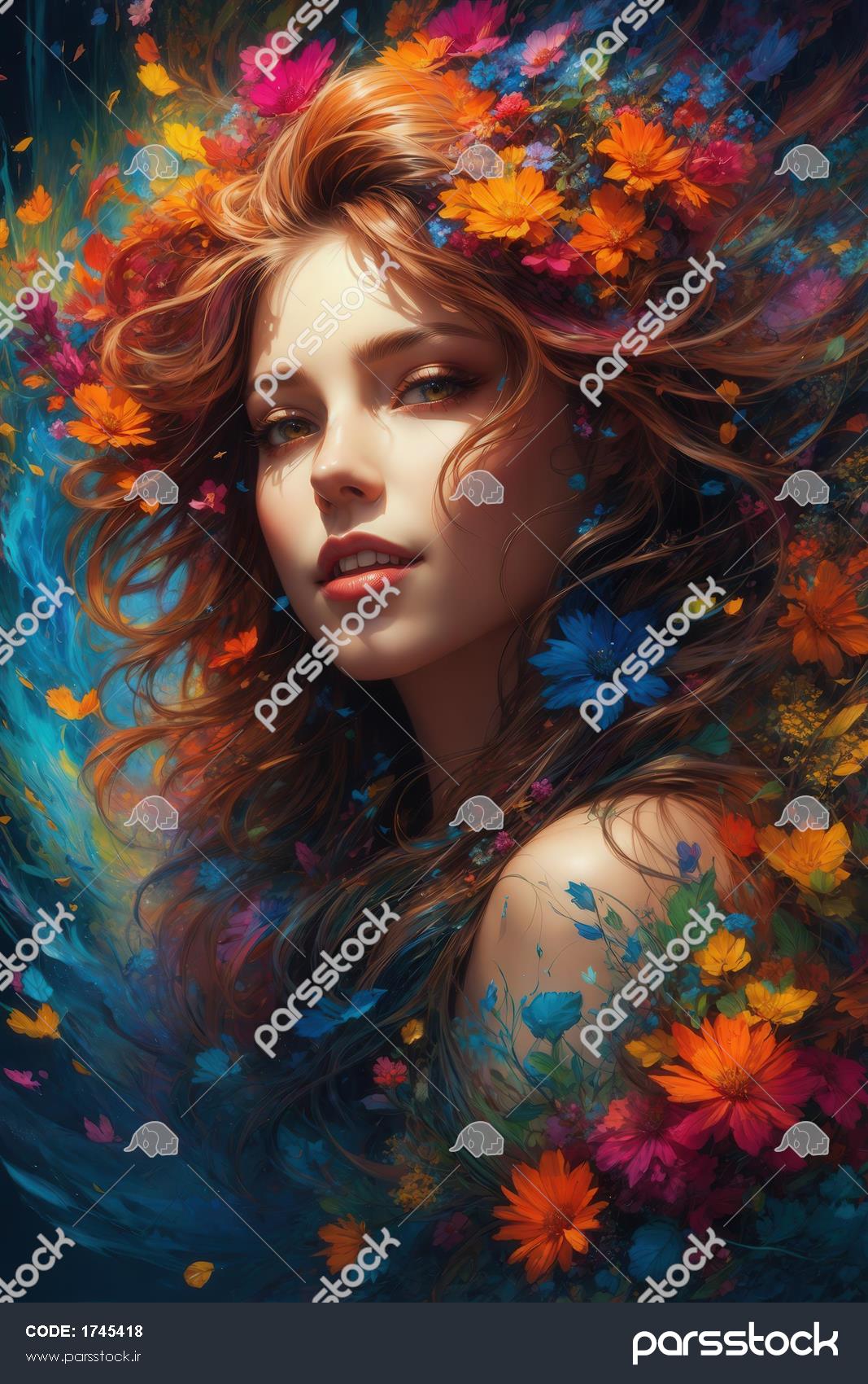 تصویر هنری بانوی مو قرمز احاطه شده با گلهای زرد، آبی و قرمز دراماتیک برای چاپ بوم و دکوراسیون فاخر پرتره کلوزآپ دختر با چشمهای روشن و موی تیره، تاج گل بنفش و پیشانیبند طلایی، مناسب چاپ آرت دکو و مدرن پرتره دختر خندان با موهای رنگی و تاج گلهای پاییزی، تم شاد و سرزنده، مناسب پوستر و چاپ پرتره مدلینگ با لباس ماکسی نارنجی و تاج گل بزرگ، استایل مجلسی فولکلوریک برای چاپ عریض پرتره دختر در بادی دانتل آبی و طلایی، موهای بلند مواج و تاج گل، تصویر فانتزی و جذاب برای چاپ دکوراتیو عکس هنری زن در حال خنده با چشمان بسته، احاطه شده با گلهای شاد و موهای درخشان برای چاپ گالری عکس نمای نزدیک زن خندان با موهای رنگینکمانی نارنجی، آبی و صورتی و گلهای بهاری برای پوستر فشن پرتره پروفایل زن با نور ملایم، احاطه شده با گلهای رز قرمز و برگهای آبی و طلایی برای چاپ گالری تصویر پرتره شاد زن با موهای رنگارنگ و لبخند زیبا در میان باغی از گلهای زنده برای چاپ روی بوم پرتره زن جذاب با موی نارنجی و تاج گلهای رنگینکمان و لباس برگ آبی در پسزمینه گلهای درخشان نمایش همه