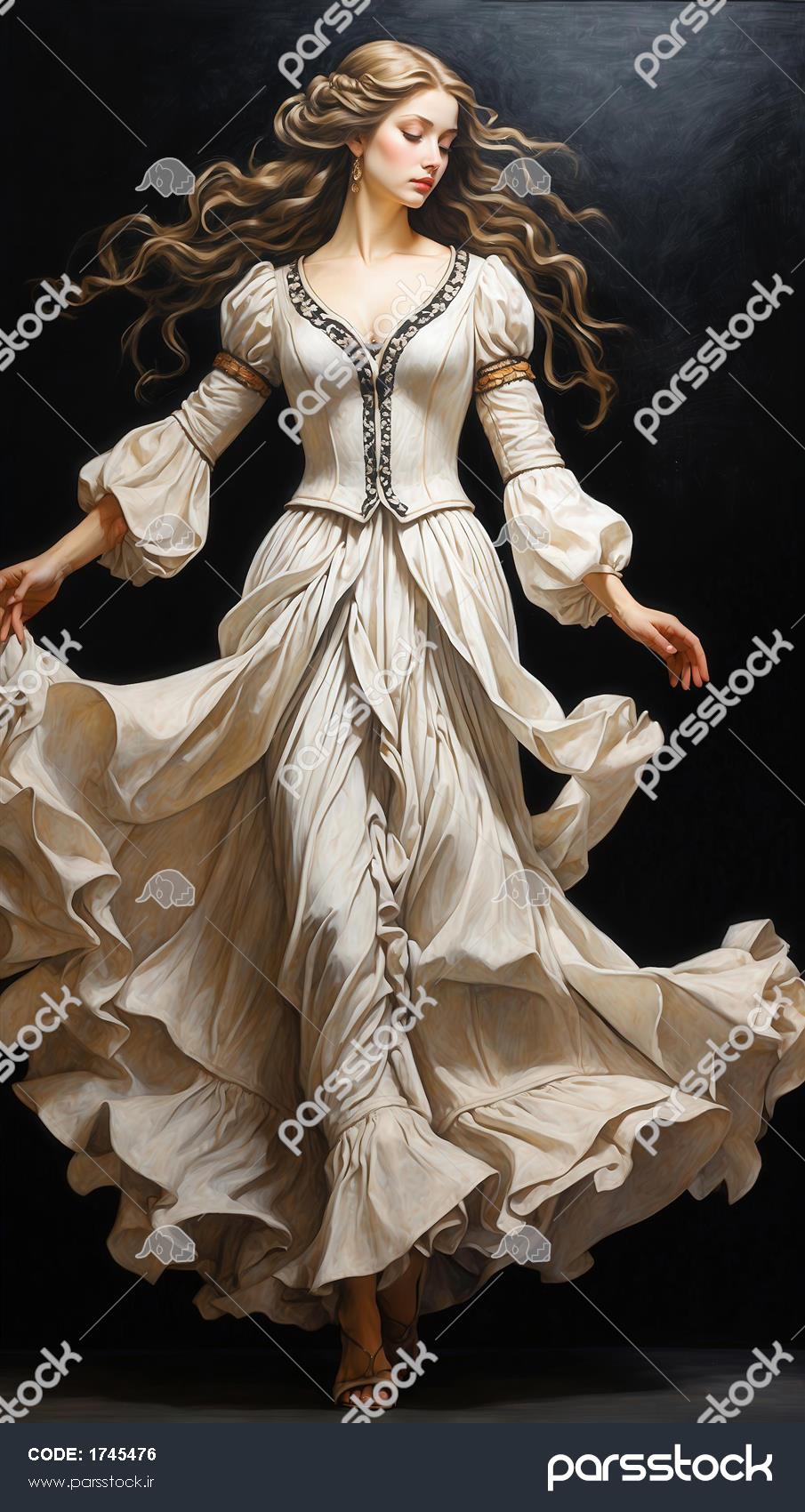پرتره لوکس زن در لباس آبی سلطنتی و طلایی با دامنهای پرچین و مواج پرتره زنانه در لباس آبی دریایی با کرست و دامن حجیم و حرکت پارچه لباس فاخر آبی درباری: زن در حال رقص با کرست و دامن پرچین تیره زیبایی باروک: زن بلوند در لباس سفید شیری با کرست و دامن پرچین تصویر رنسانسی زن در لباس فاخر زرد و مشکی با دامن لایهلایه متحرک زن در لباس سلطنتی طلایی با کرست بژ و دامن پرچین و آستینهای پفدار پرتره کلاسیک یک زن با موهای فر طلایی و لباس بلند با جزئیات بندکشی و آستینهای پفدار تصویر دراماتیک زن با لباس آبی کبالت و دامن چیندار در حالتی رقصگونه زن در لباس رمانتیک طلایی با کت کرستی و دامن پرچین در حالتی رقصگونه زیبایی قرون وسطایی در لباس کرستی آبی روشن با دامن و آستینهای پفکی مشاهده همه