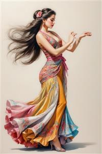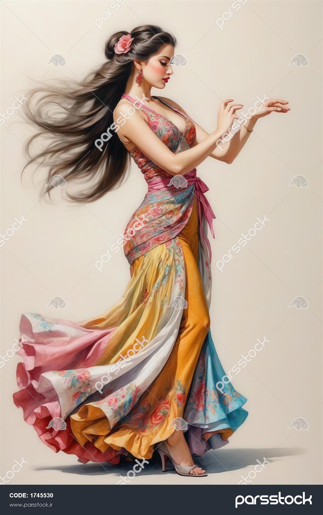 پرتره زن با لباس صورتی و دامن آبی صورتی لایهای، استایل شیک بوهو با حرکت بالا تنه زن در حال رقص با لباس آبی و دامن نارنجی لایهای، پرتره هنری در فضای معماری رومی مدل با لباس مجلسی زرد و دامن پُرچین در حال رقص، پرتره با تِم نارنجی و آبی تیره زن زیبا در لباس بوهو با آستین پفی و دامن لایهلایه، پرتره هنری با پسزمینه رمانتیک دختر با لباس بالاتنه آبی و دامن رنگارنگ در حال رقص، تصویر هنری آبرنگی با موهای پروازی پرتره تمام قد زن با لباس لایهدار طرحدار و موی آشفته، ترکیب رنگ آبرنگی برای چاپ دکور رقصنده با لباس نارنجی زرد و شال صورتی، استایل فلامنکو در یک نقاشی پر رنگ و لعاب مدل با لباس یقه باز و شال روان، رقصنده زیبا با دامن رنگینکمانی و موی بسته پرتره زن جوان با کلاه حصیری و لباس تابستانی در زمینه رنگهای گرم و شاد پرتره تمام قد زن با لباس سفید و دامن رنگهای آتشین، موهای مواج رها و حس رمانتیک مشاهده همه