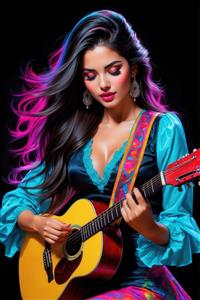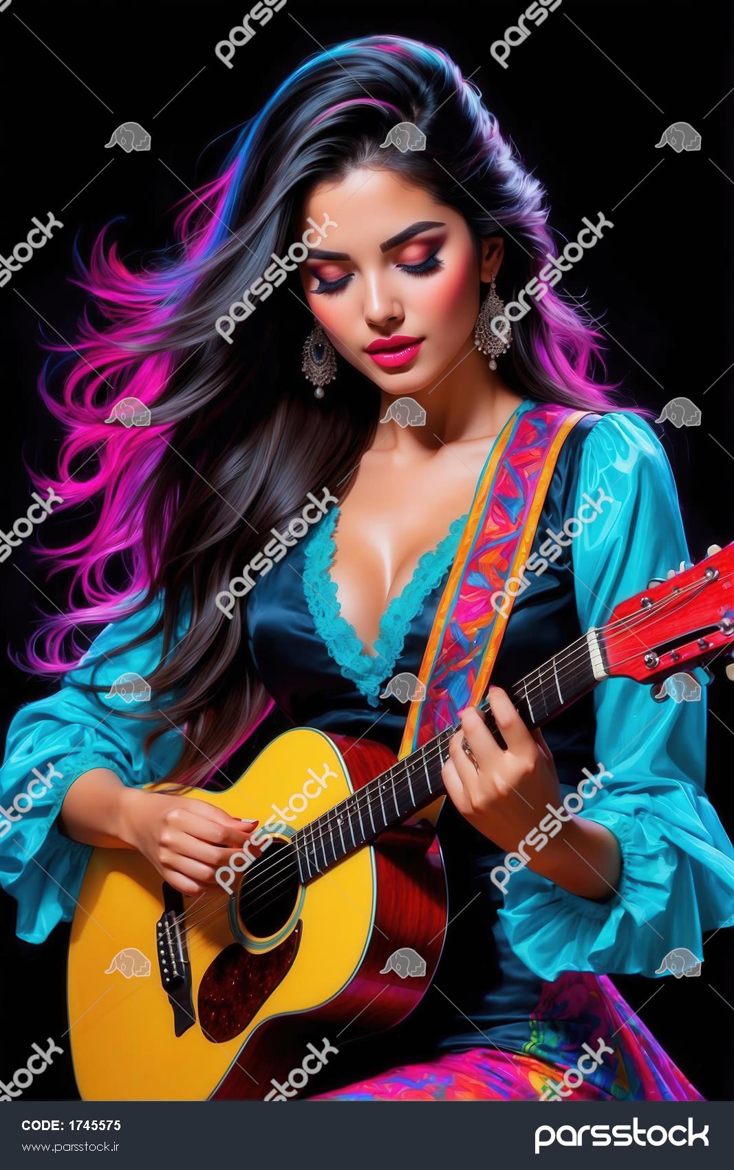 پرتره زن گیتاریست با موهای رنگینکمان نئونی و گیتار زرد رنگ، نگاه متمرکز تصویر نیمتنه زن هنرمند با بلوز فشن، گیتار زرد و موهای نئونی نارنجی پرتره زن گیتاریست با لباس رنگارنگ و گیتار آکوستیک صورتی در پسزمینه تیره پرتره گیتاریست زن با موهای امبره نئونی و گیتار در پسزمینه کهکشانی پرتره زن نوازنده با گیتار الکتریک و موهای رنگینکمانی در فضا و ستارگان پرتره زن گیتاریست با موهای رنگینکمانی و گیتار آکوستیک، استایل فستیوال پرتره زن گیتاریست با گیتار الکتریک قرمز و گردنبند فیروزهای بزرگ پرتره زن با گیتار الکتریک قرمز، موهای رنگینکمانی بلند و پسزمینه رنگینکمان زن گیتاریست با موهای موجدار و لباس گلدوزی شده در حال نواختن گیتار چوبی کلوزآپ زن با گیتار، بلوز ساتن آبی و موهای رنگی نئونی در استایل نئوپانک مشاهده همه