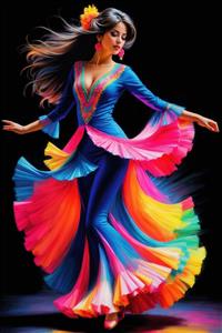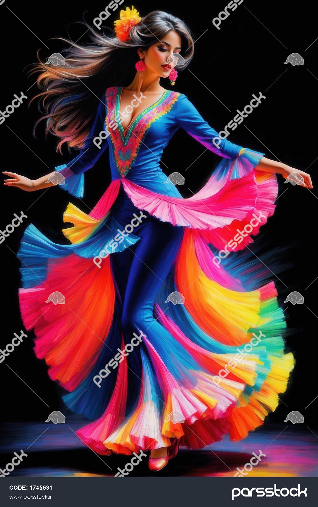 پرتره زن با لباس آبی تیره و چینهای رنگینکمانی در آستین و دامن رقصنده زن با لباس نارنجی و دامن چند رنگ متحرک و موهای بلند پروازکننده مدل زنانه با لباس آستین بلند بوهو/اسپانیایی رنگارنگ و حرکت دامن پرتره تمام قد زن با لباس مجلسی و موهای بلند موجدار در پسزمینه آبرنگی تصویر فشن زن با لباس بلند فیروزهای و دامن پرچین رنگینکمان پرتره زن با لباس صورتی و دامن آبی صورتی لایهای، استایل شیک بوهو با حرکت بالا تنه پرتره زن با لباس ماهی رنگینکمانی و دامن چیندار متحرک (استایل شاد) پرتره زن با لباس فلامنکو و دامن پفدار صورتی/زرد در پسزمینه تیره پرتره فشن زن با کرست و آستینهای پفی طلایی و لباس بلند فیروزهای پرچین با پسزمینه آبی برای چاپ دکوراتیو پرتره دختر با موهای بلند تیره و تاج گل طبیعی، لباس آبی سنتی و جواهرات طلایی فیروزهای، مناسب دکوراسیون ایرانی مشاهده همه