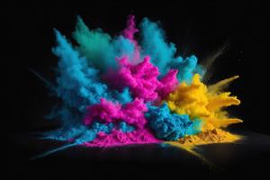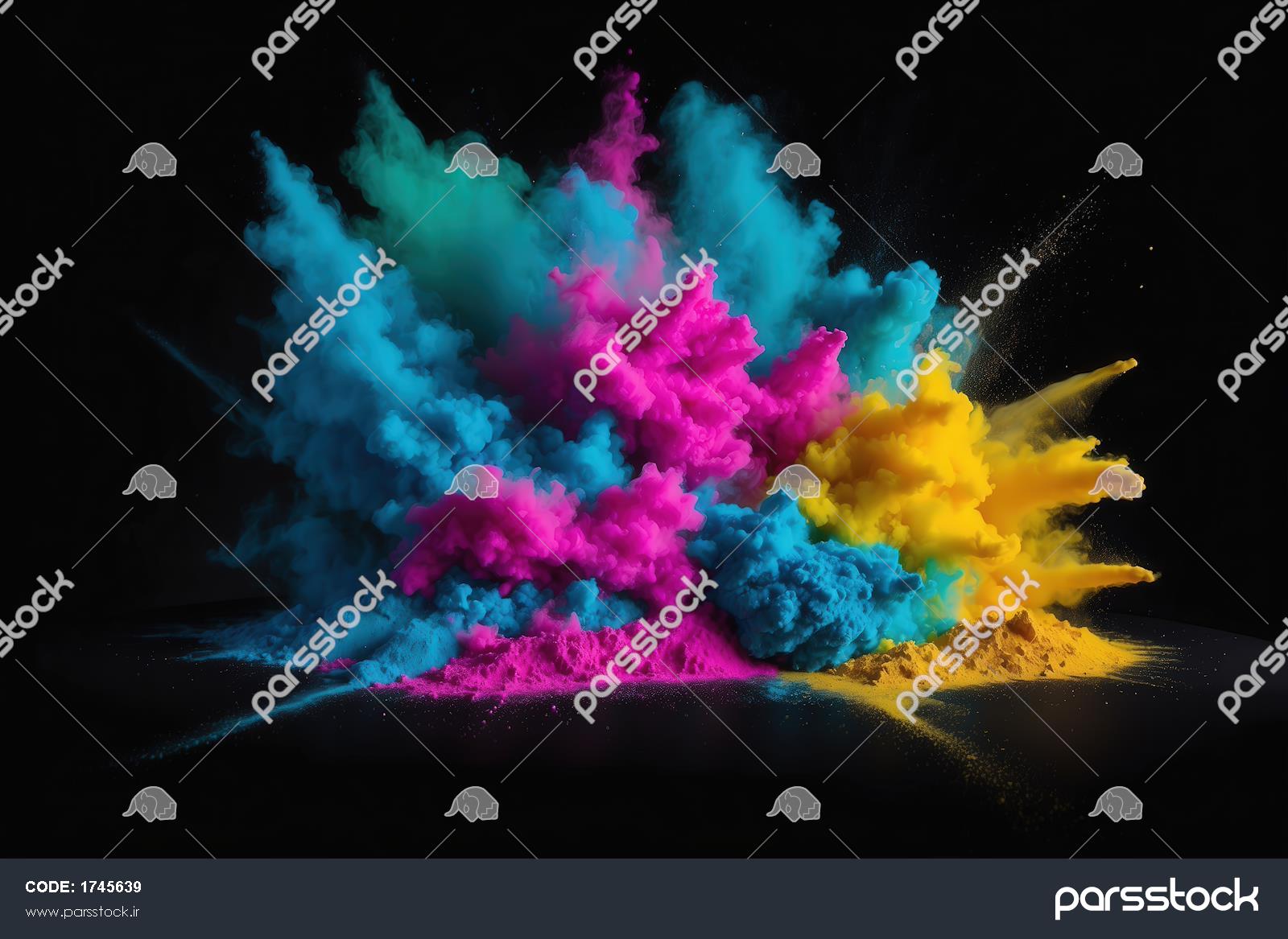 انفجار رنگ پودری (کالر پودر) در آسمان سیاه برای پس‌زمینه دکوراتیو