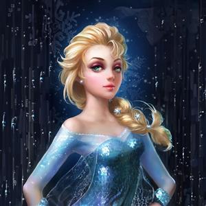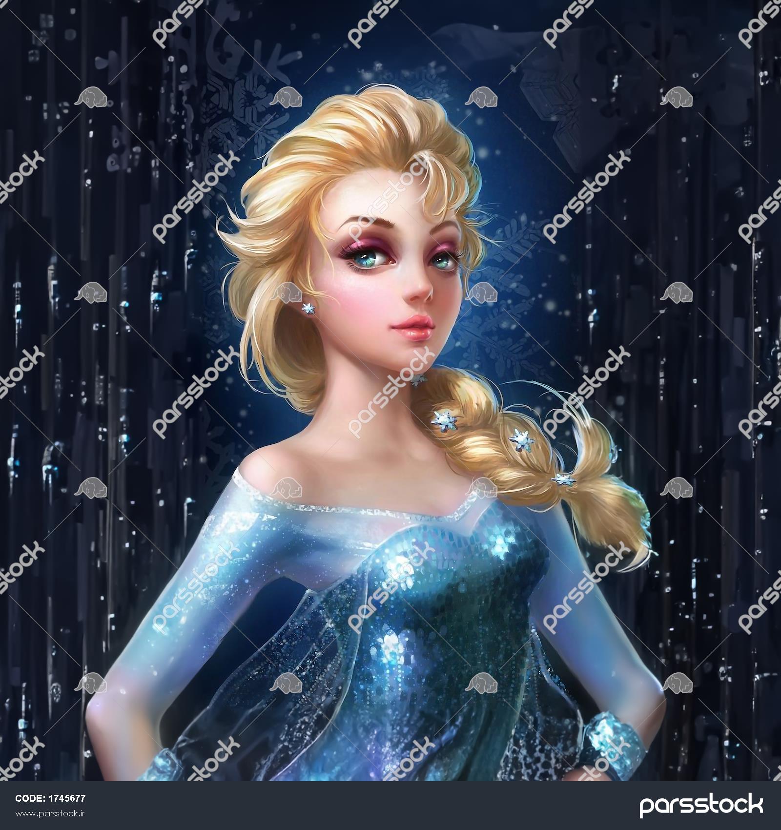پرتره هنری و دراماتیک السا با پس‌زمینه بارانی و دکوراتیو برای چاپ