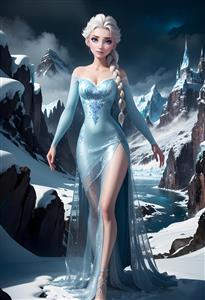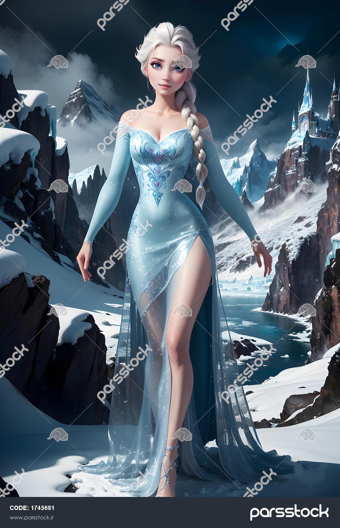 تصویر کامل السا با لباس آبی و شاین در کوهستان‌های یخی و برفی