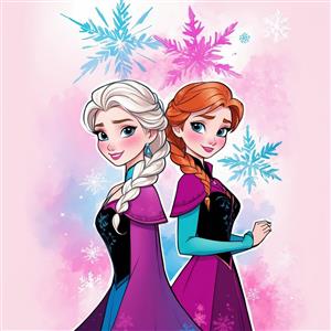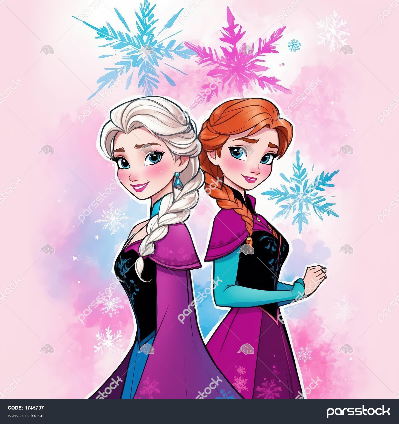 عکس باکیفیت آنا و السا پشت به پشت، با دانه‌های برف رنگارنگ
