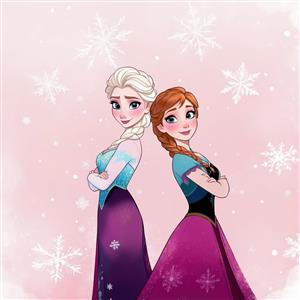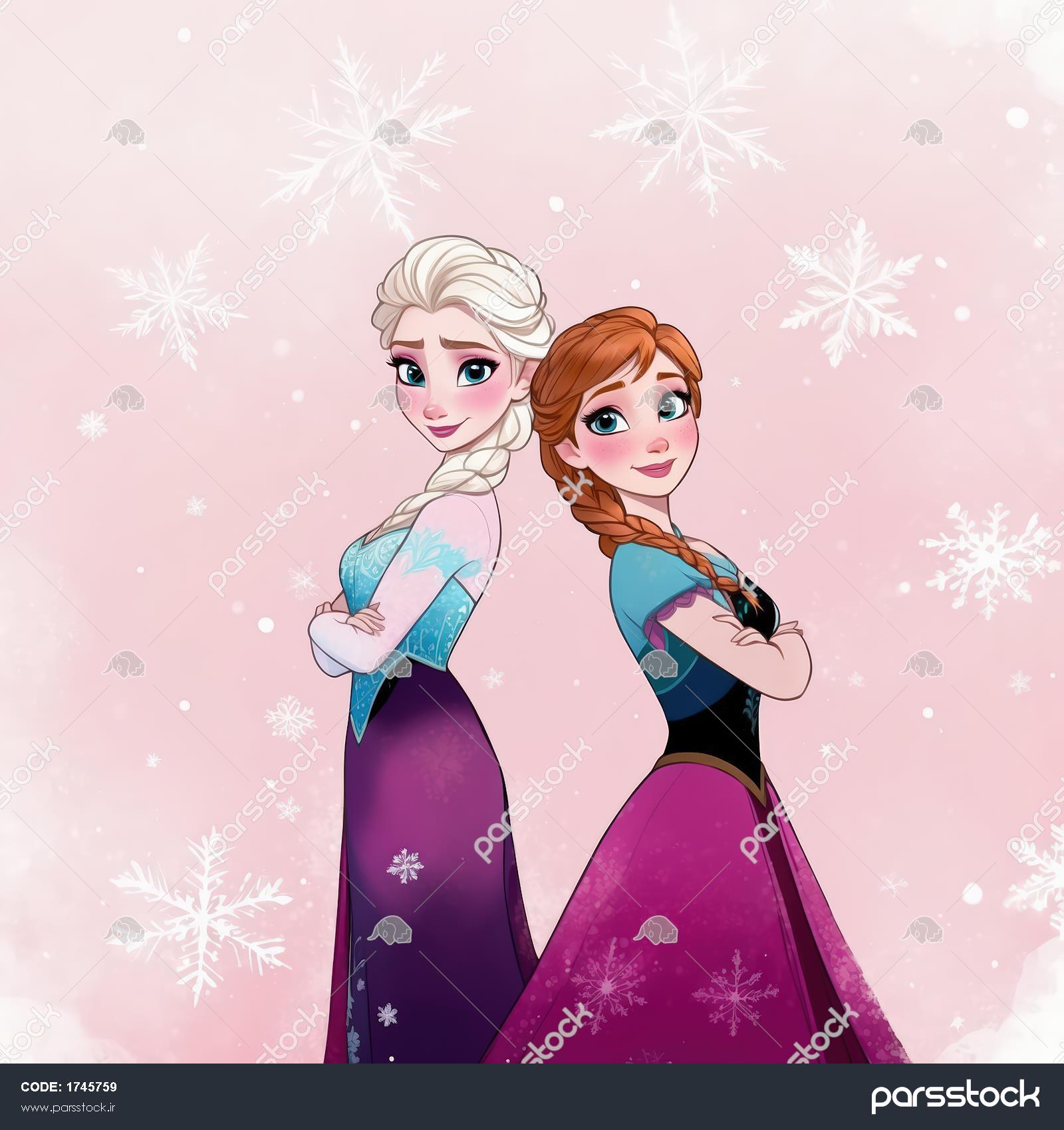 پوستر السا و آنا (فروزن) با پس‌زمینه صورتی، مناسب چاپ دکوراتیو