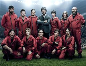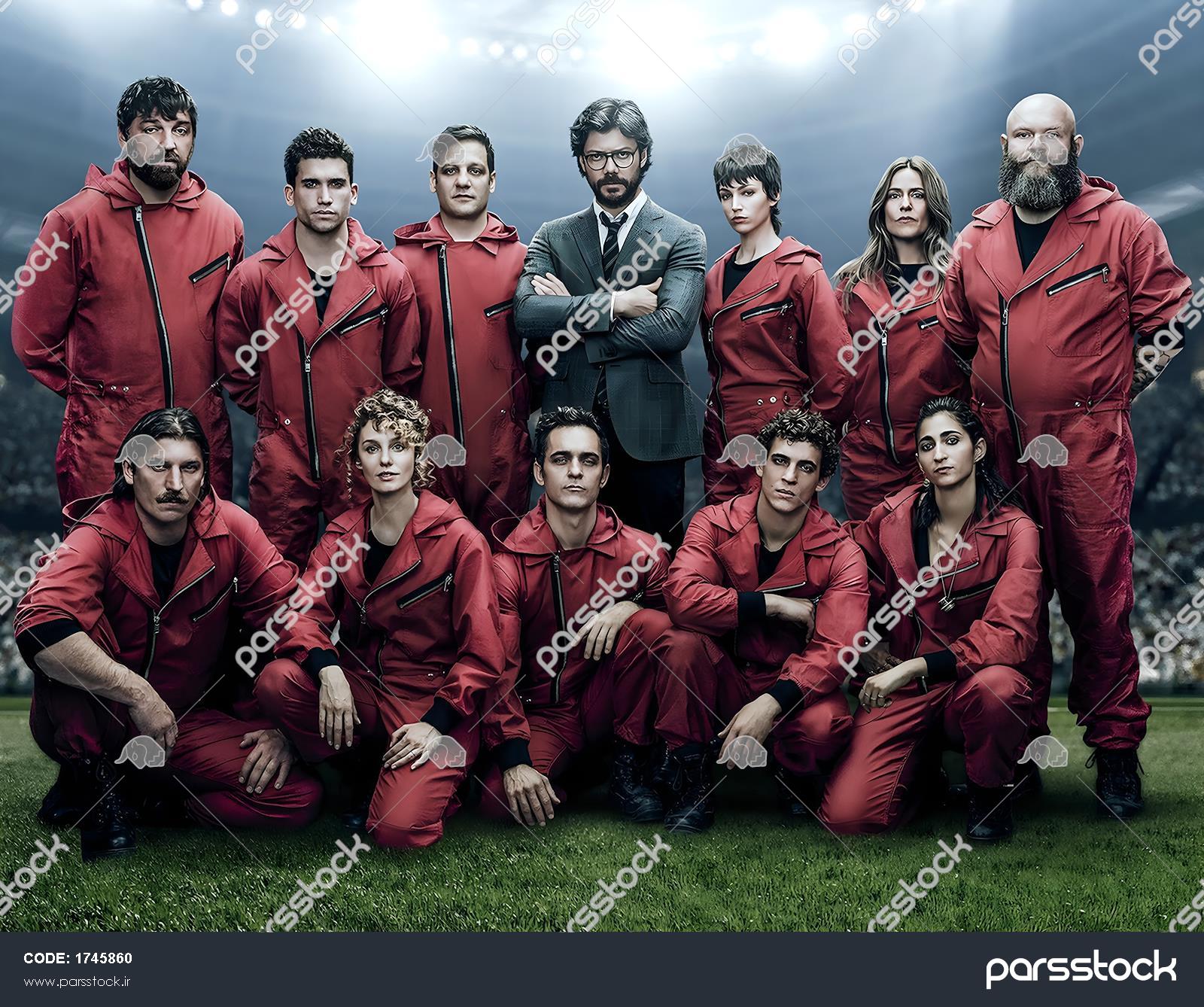 عکس گروه سارقان با لباس قرمز و پروفسور سریال خانه کاغذی برای تابلو