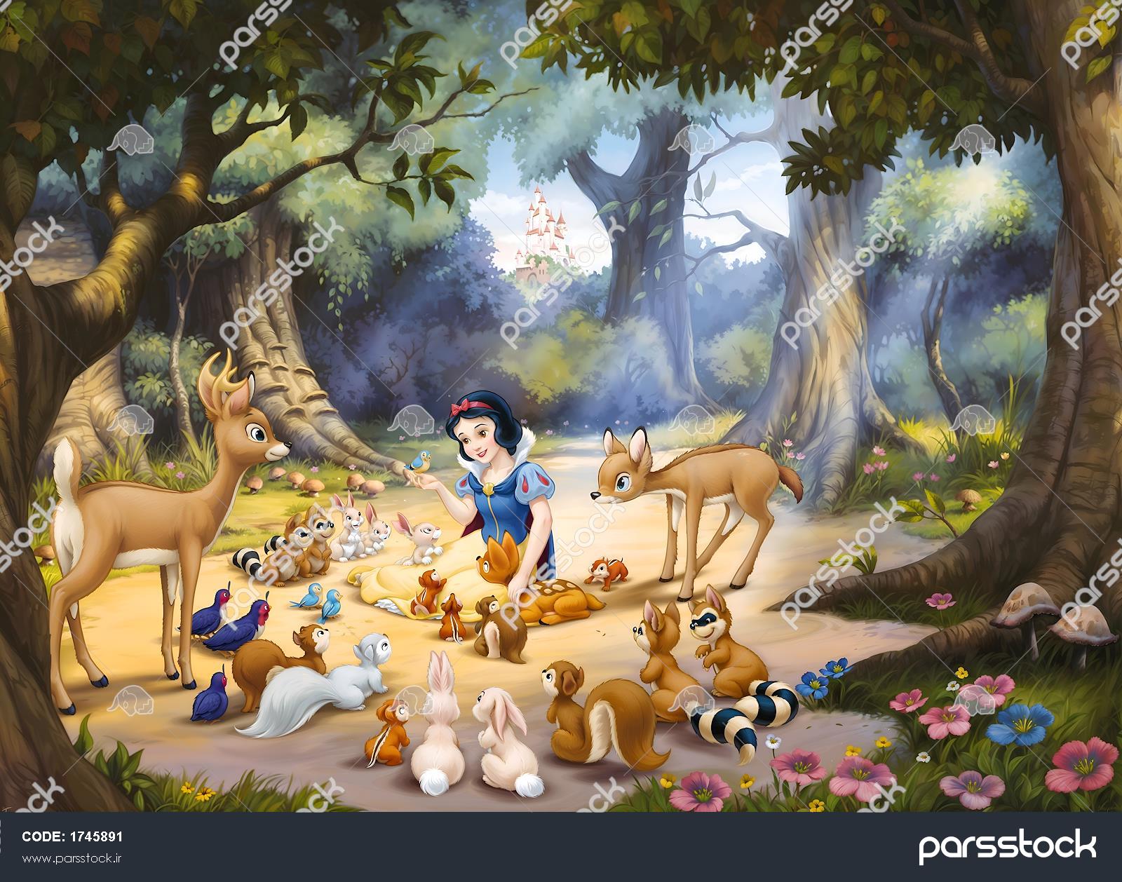 طرح سفید برفی دیزنی و حیوانات جنگل برای پوستر دیواری اتاق کودک