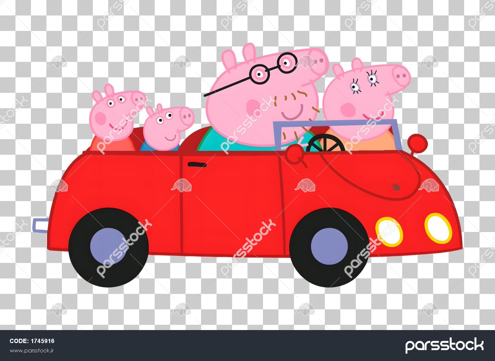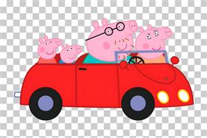 عکس خانواده پپا پیگ در حال رانندگی با ماشین قرمز برای روتختی کودک