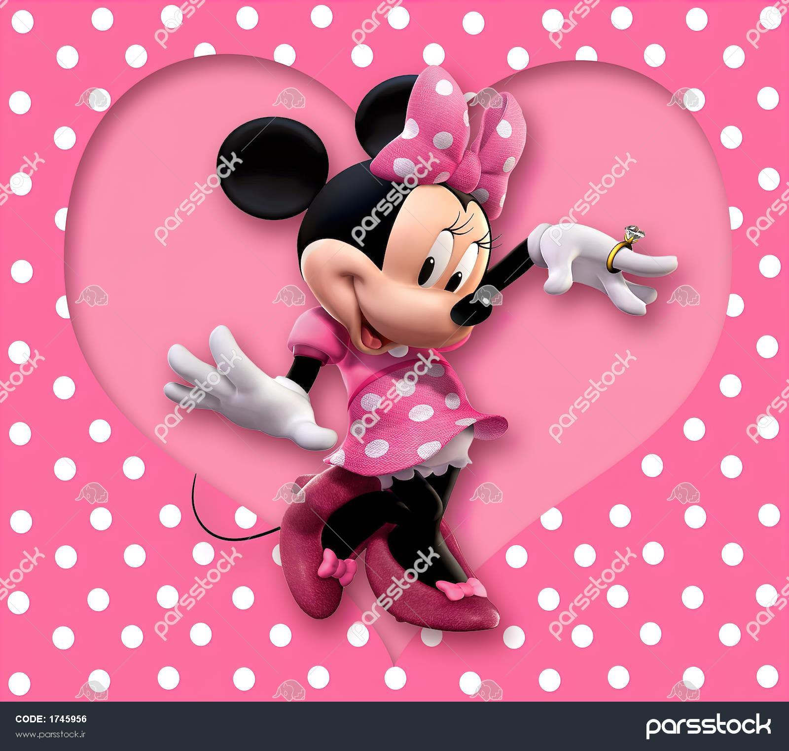 طرح مینی ماوس با لباس خالدار صورتی برای چاپ روی کوسن و روتختی