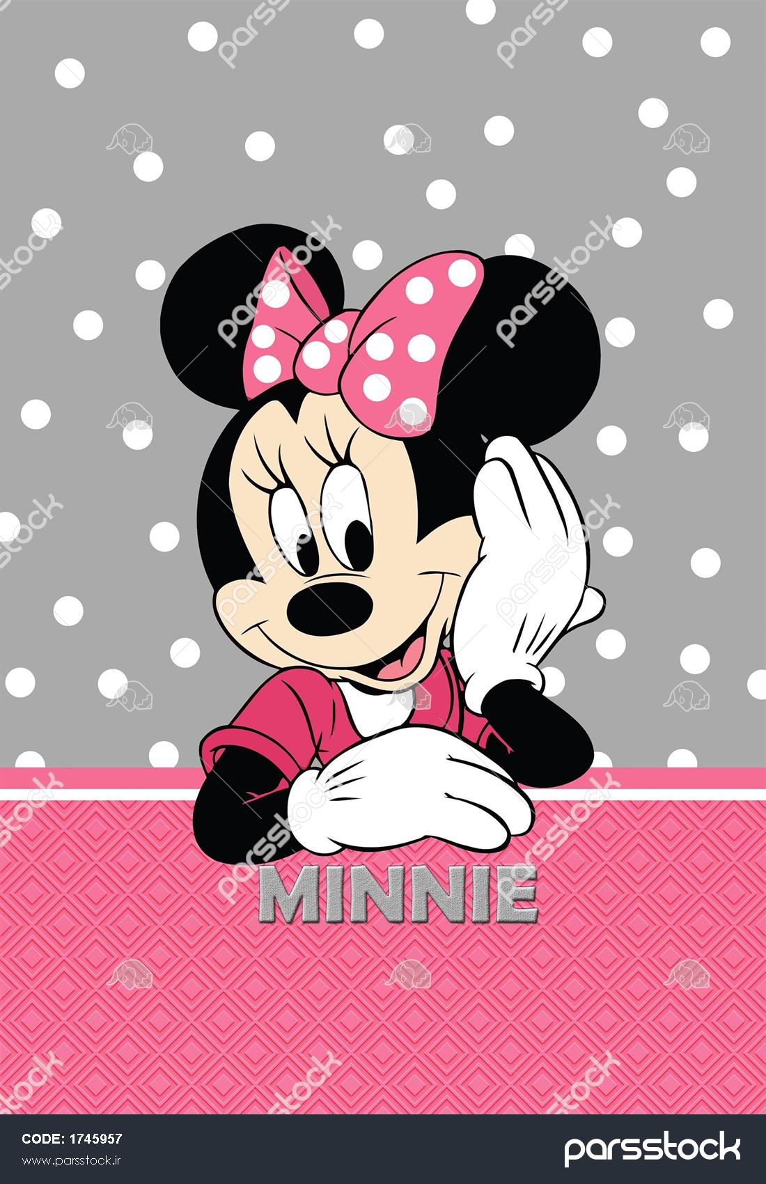 تصویر مینی ماوس با پس زمینه خالدار صورتی و خاکستری برای چاپ